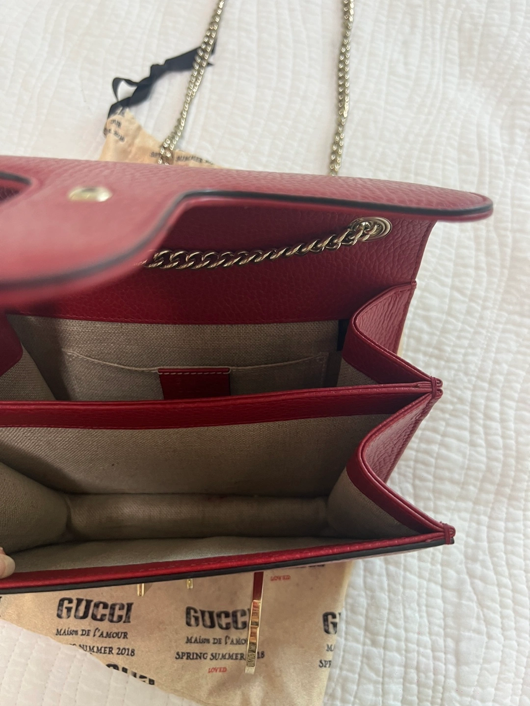 Gucci Red Leather Chain Bag