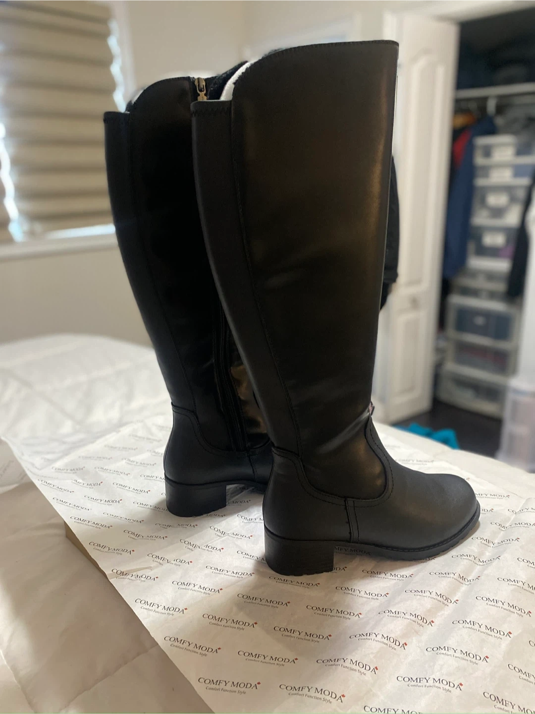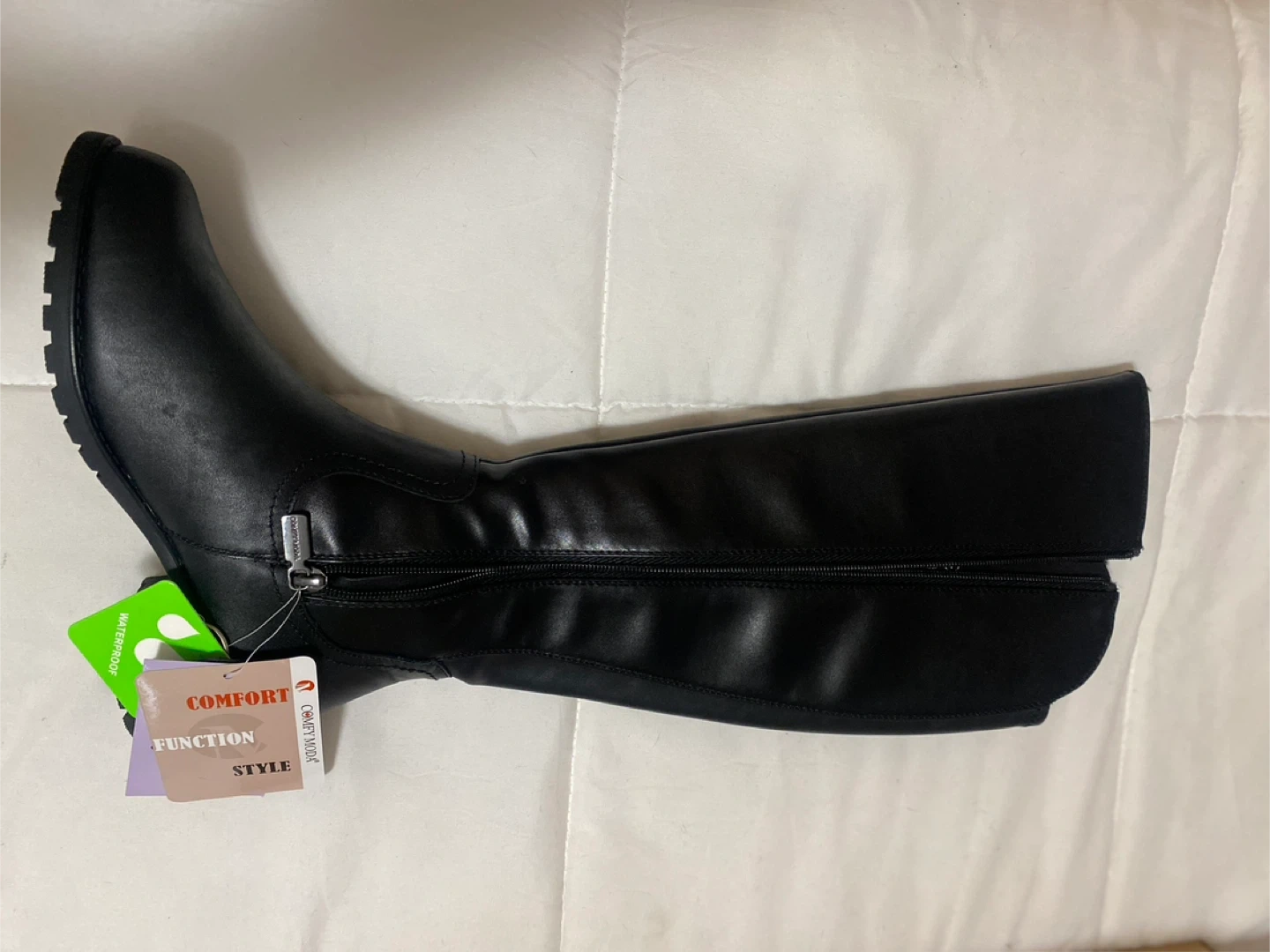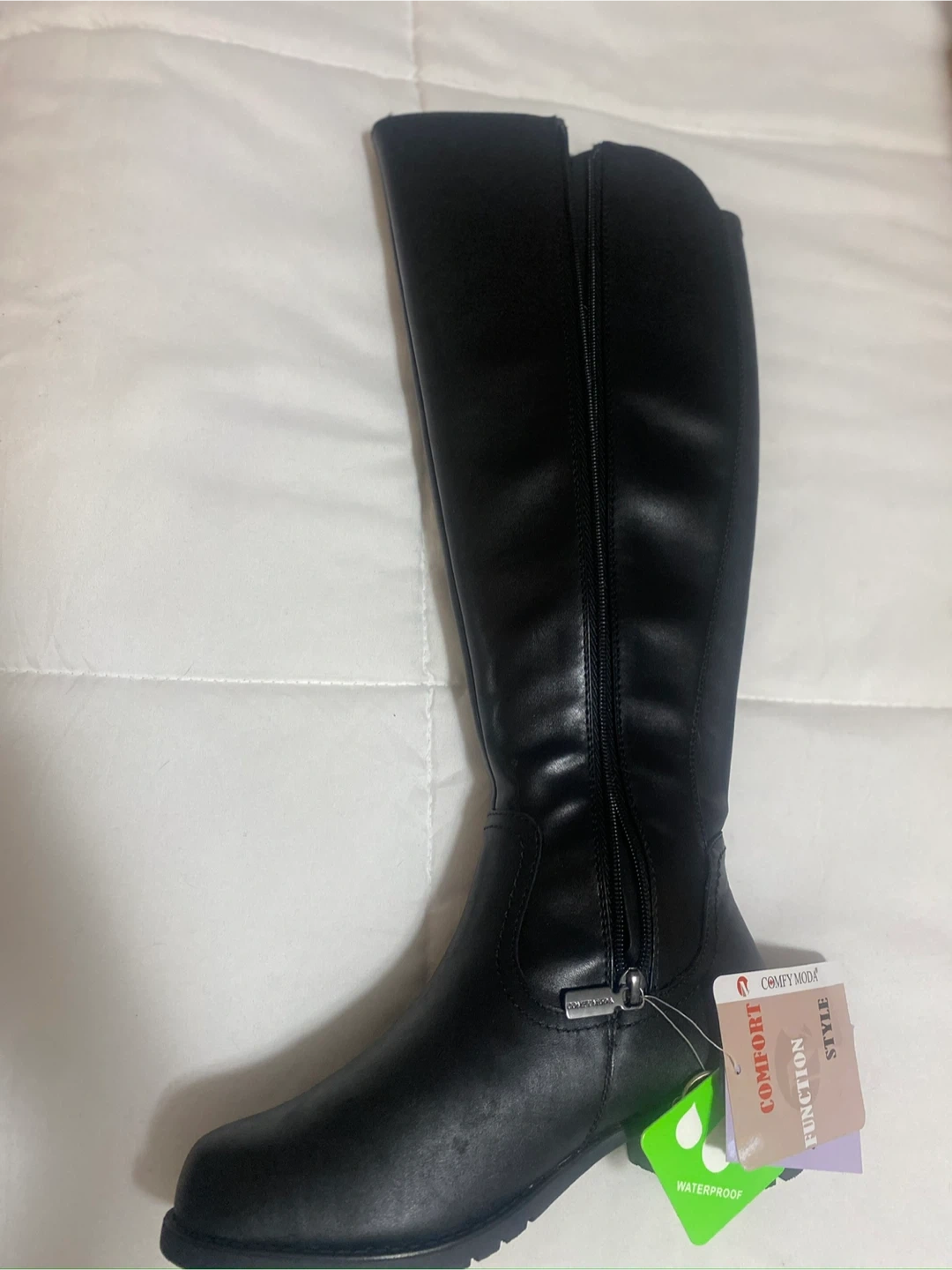 Selling a pair of Comfy Moda knee-high boots! These are waterproof and made of genuine leather. They're designed for winter comfort with a memory foam insole and thermal insulation. Perfect for keeping your feet warm and dry during the colder months