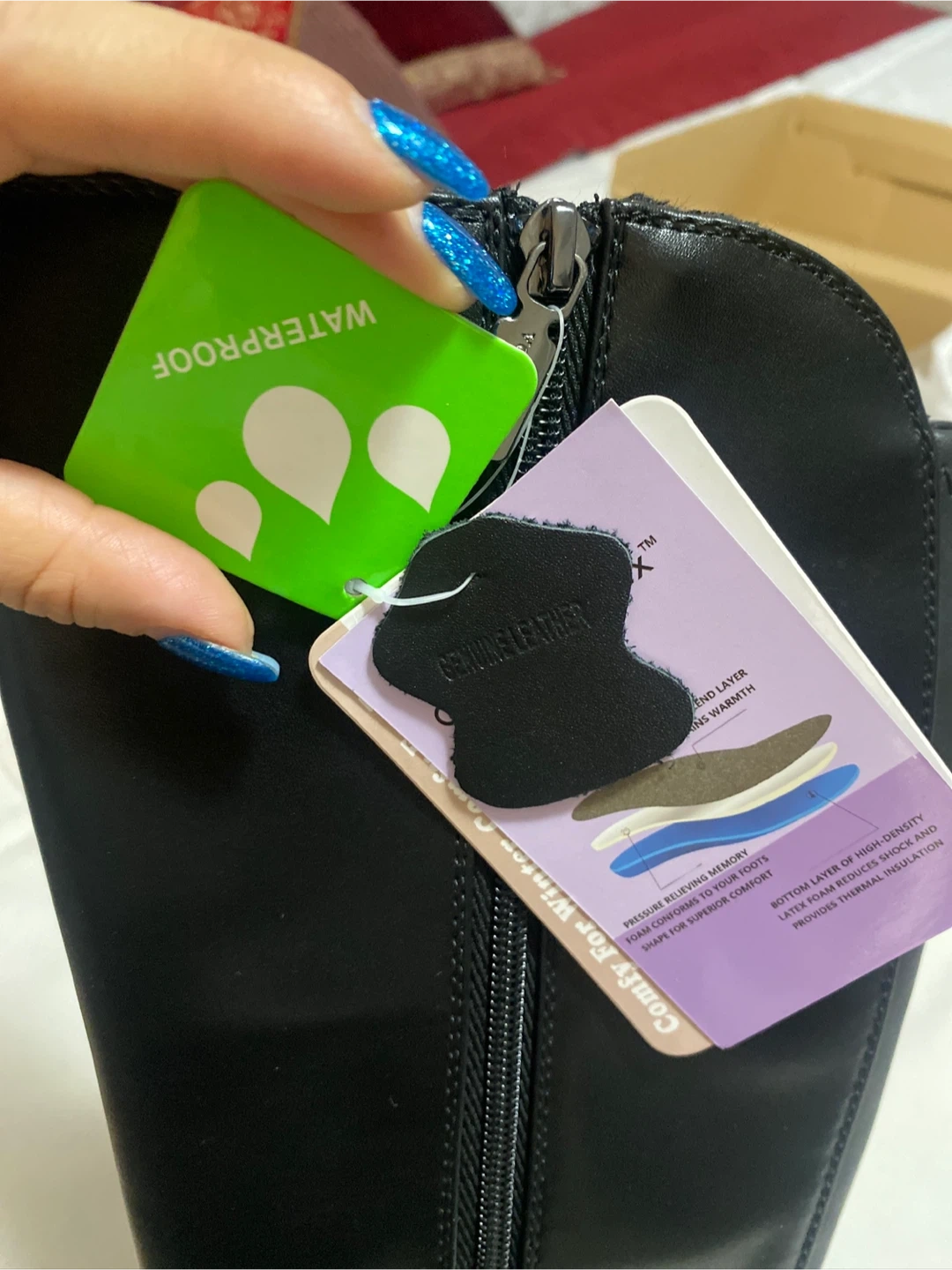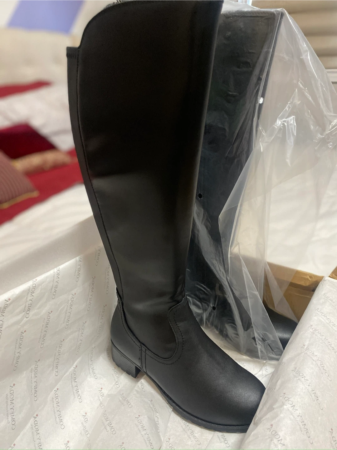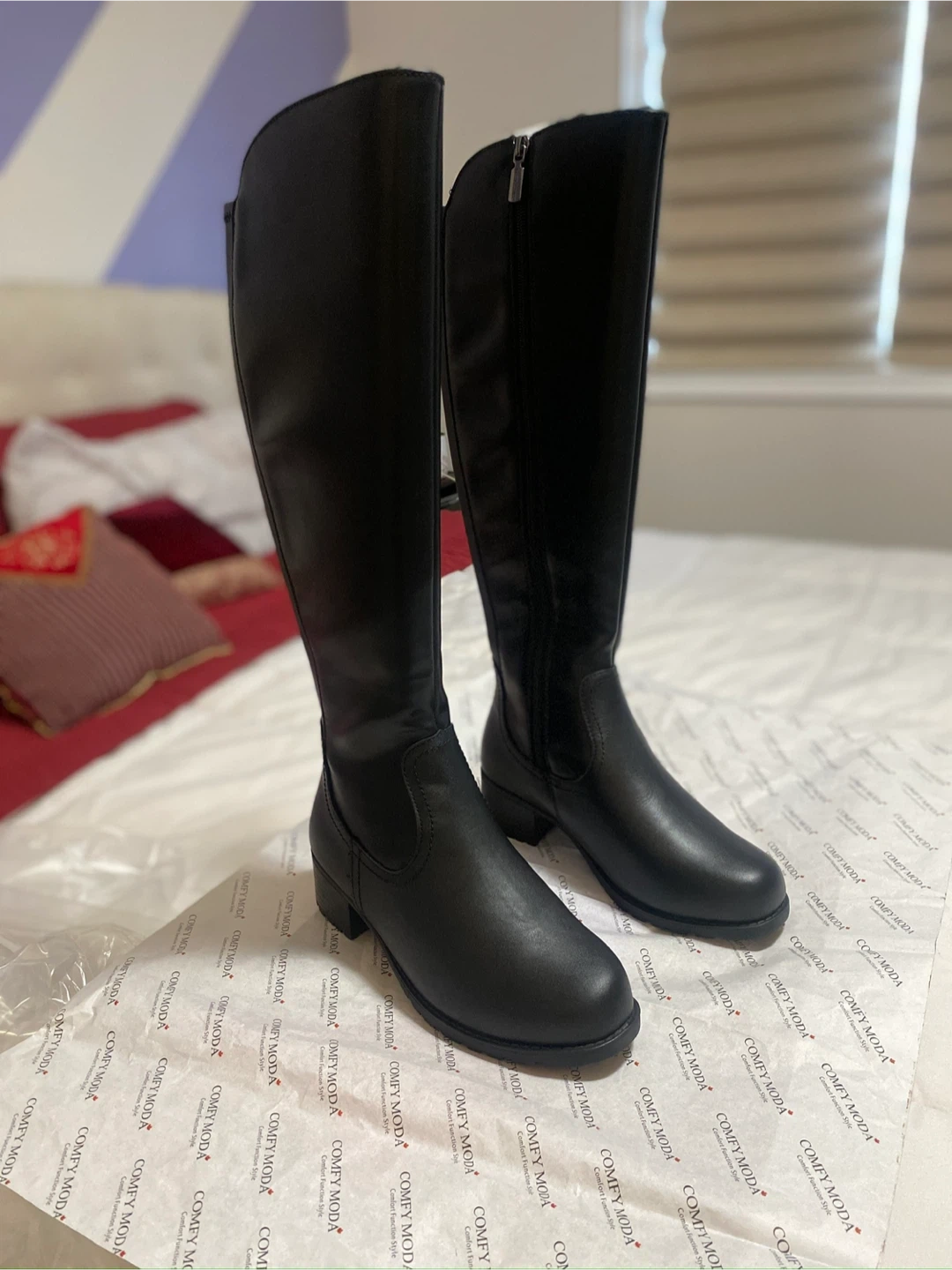 Selling a pair of Comfy Moda knee-high boots! These are waterproof and made of genuine leather. They're designed for winter comfort with a memory foam insole and thermal insulation. Perfect for keeping your feet warm and dry during the colder months