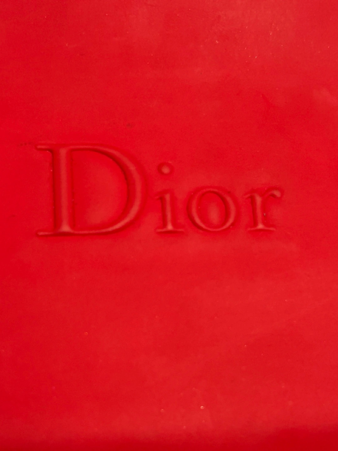 Here's a cute Dior Beaute pouch in a vibrant red! It's made of polyurethane and features the Dior logo. Perfect for carrying your makeup or other small essentials