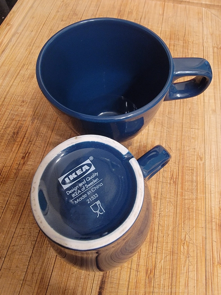 Giving away a set of two IKEA mugs in a lovely blue colour. They're in great shape and ready for a new home. Perfect for your morning coffee or tea!