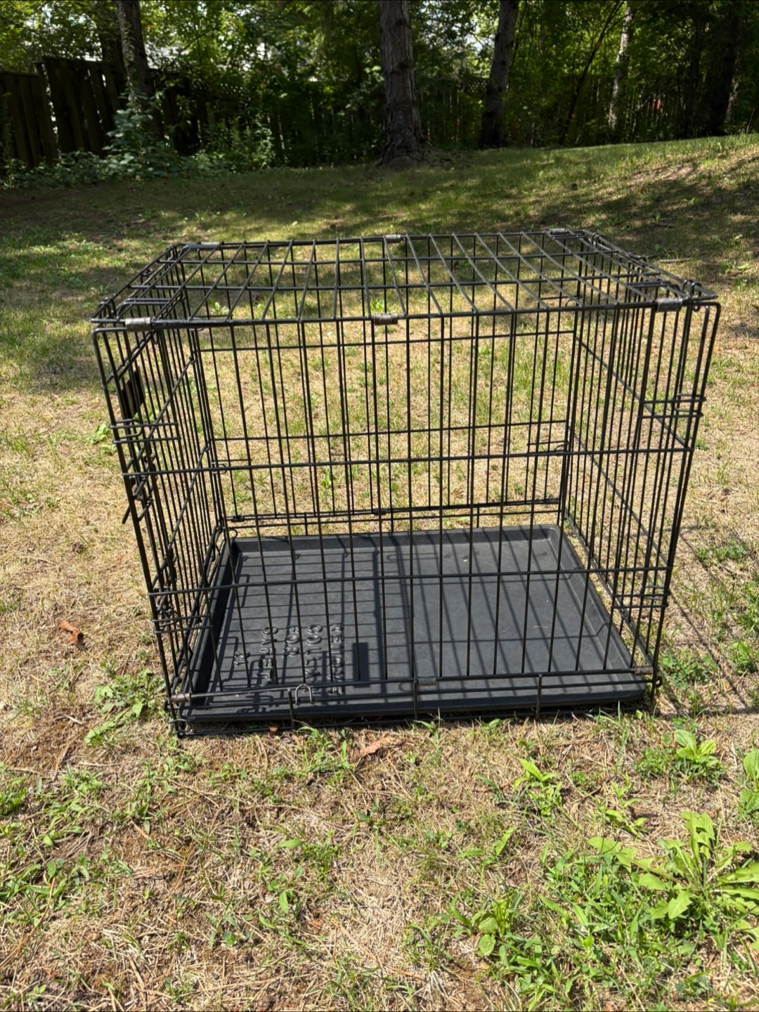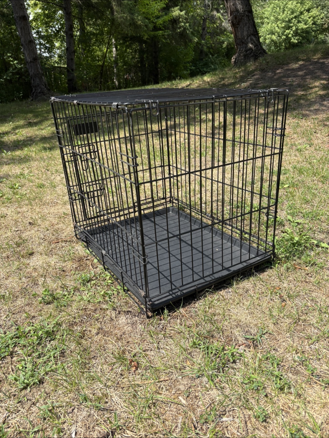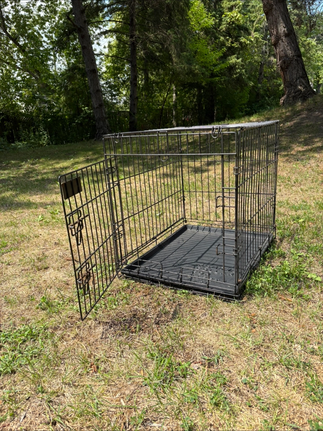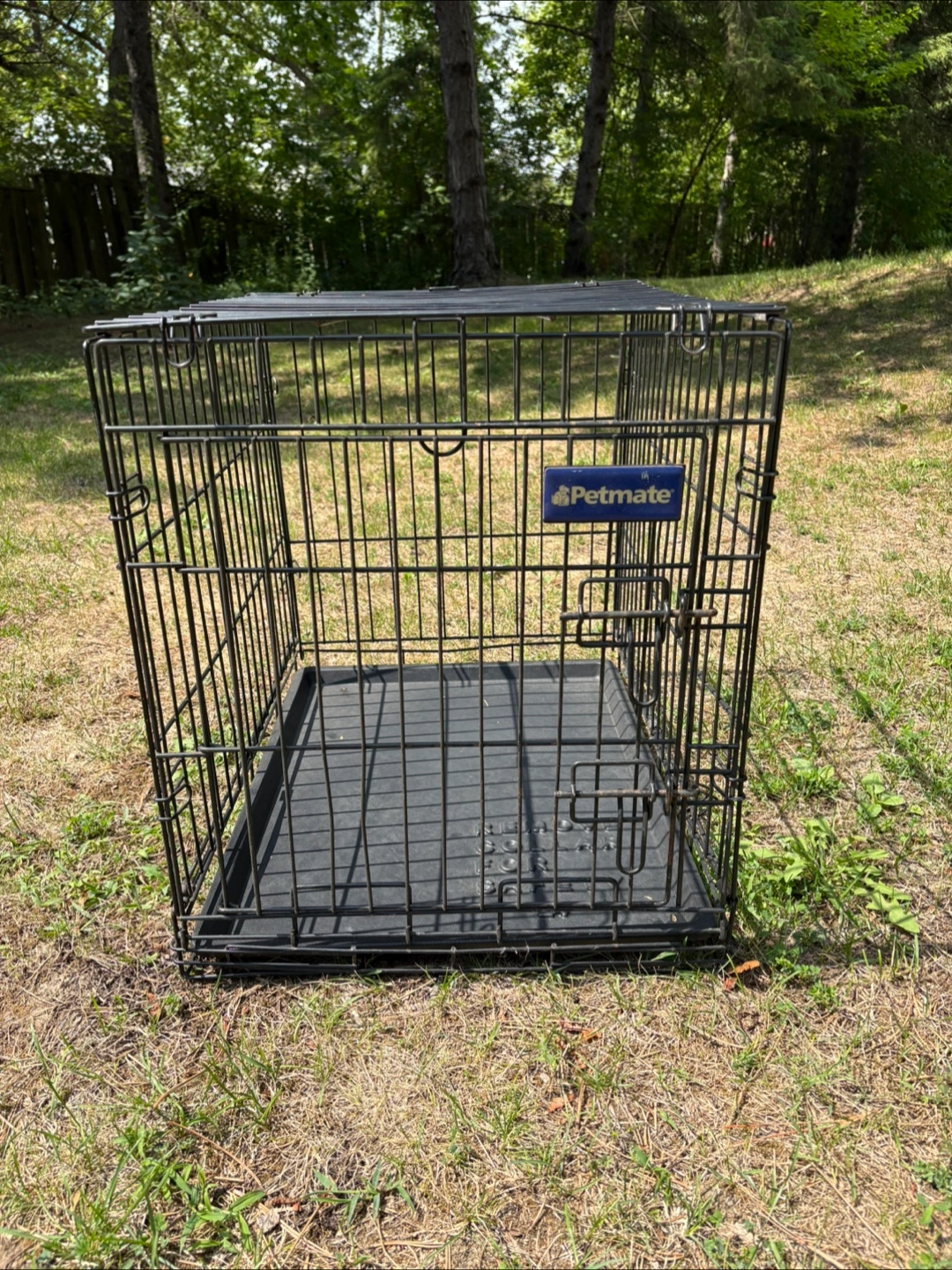 Selling a Petmate dog crate in black. It's in great condition and ready for a new furry friend. Perfect for training or providing a safe space for your dog at home.