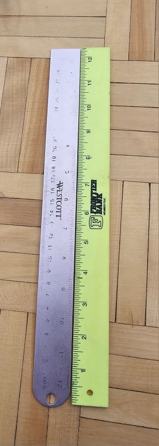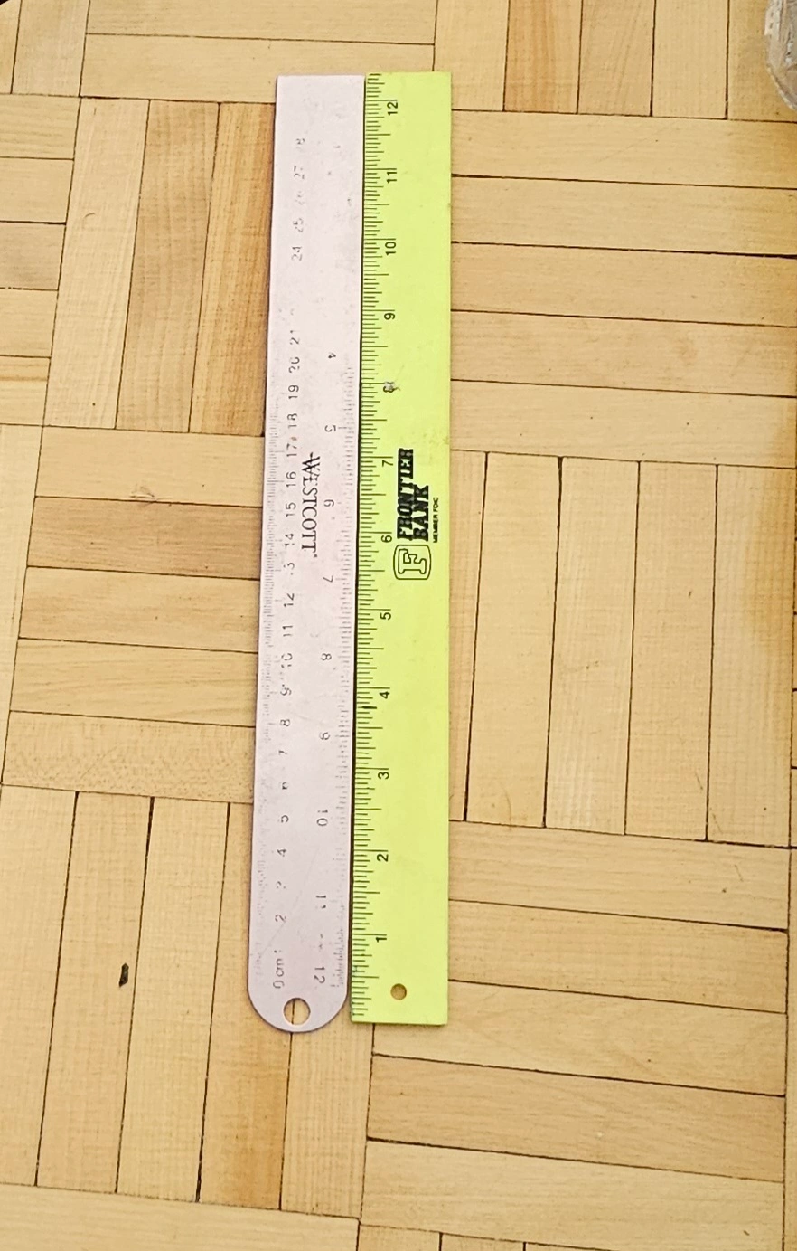 2 12-inch rulers. One is a Westcott ruler and the other is a Frontier Bank ruler. Great for school, crafting, or measuring small objects