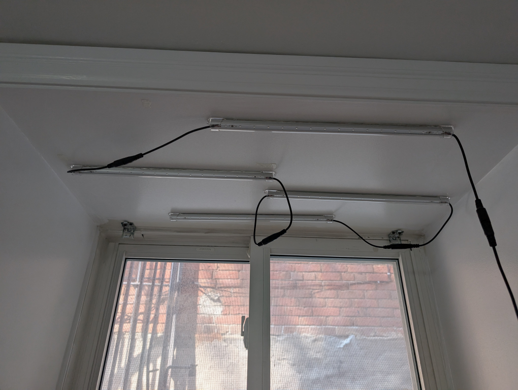 I'm selling these LED grow light strips. They're in great condition and ready to help your plants thrive indoors. Easy to install with double sided sticky tape or glue dots. Perfect for starting seeds or supplementing light for houseplants during the winter months