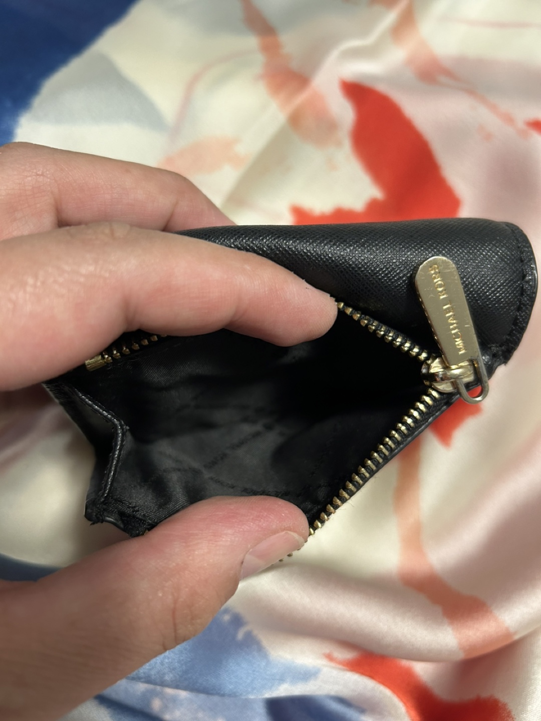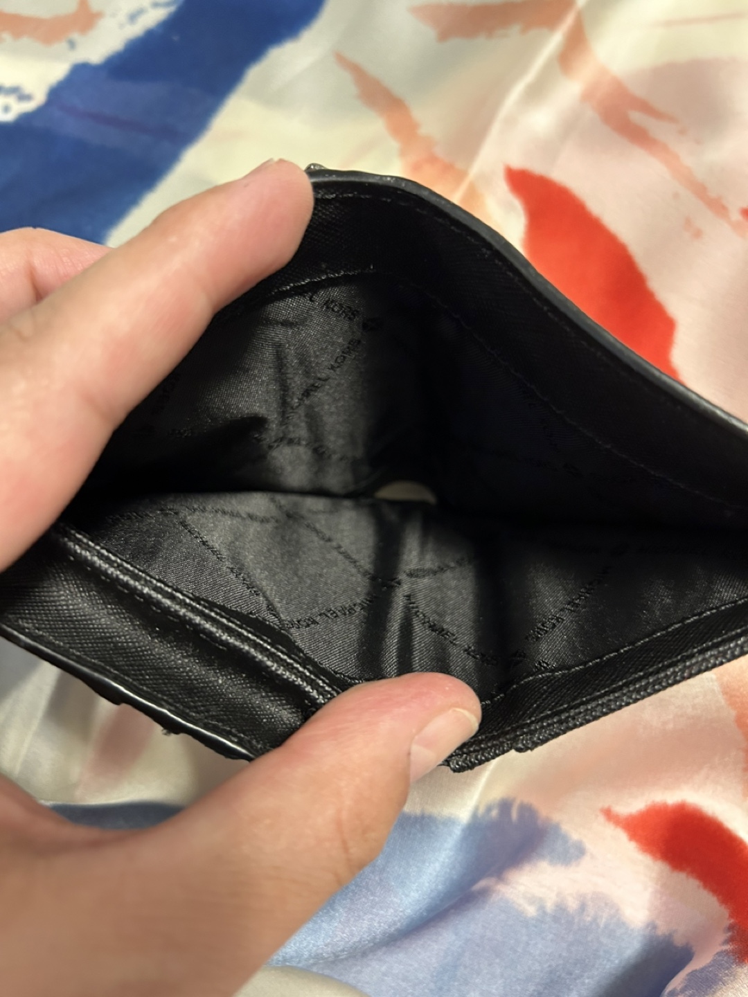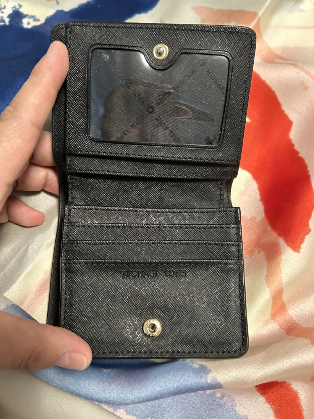 Selling a gently used Michael Kors wallet in black. It has a studded design and a convenient zip closure for coins. Inside, there are card slots and a clear ID window. Perfect for everyday use! I invite you to view my other items; if you are interested in any of them, I will give you a better price.