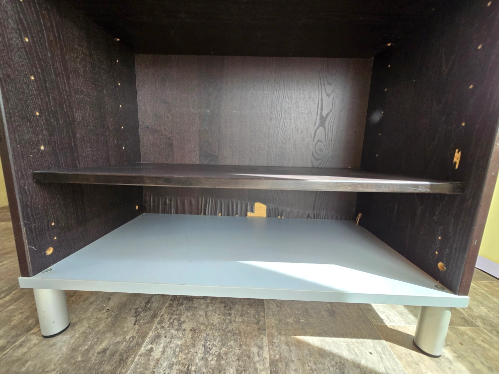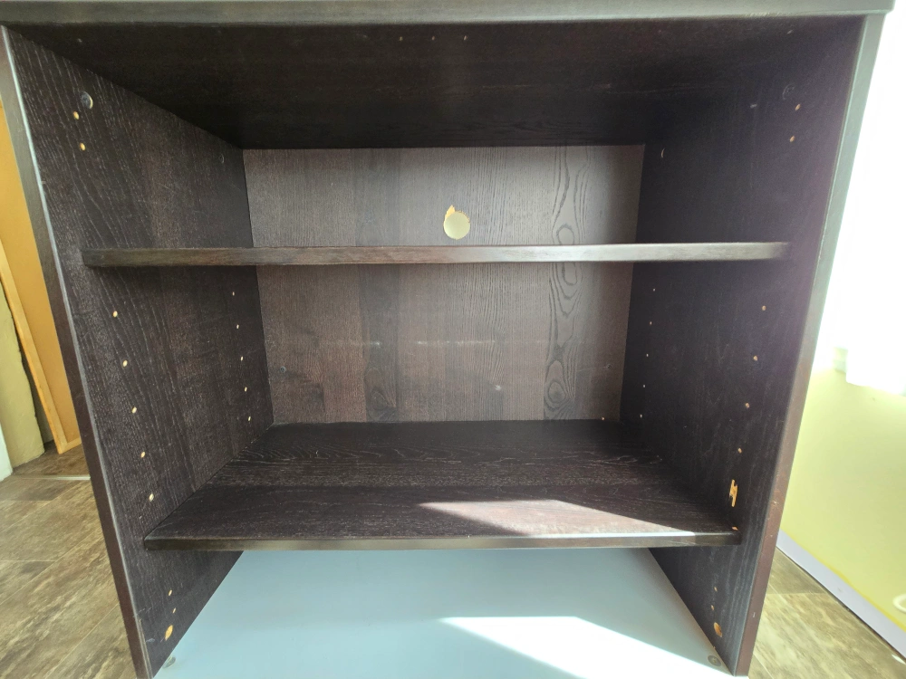 39Older wooden cabinet.....have used it as a bookshelf, desk, stereo/tv stand, bar, kitchen island, etc.....still perfectly functional. Floating counter top is 40 + pounds. 2 adjustable shelves and lifts off solid base for easy moving. Free to a good home....contact anytime.