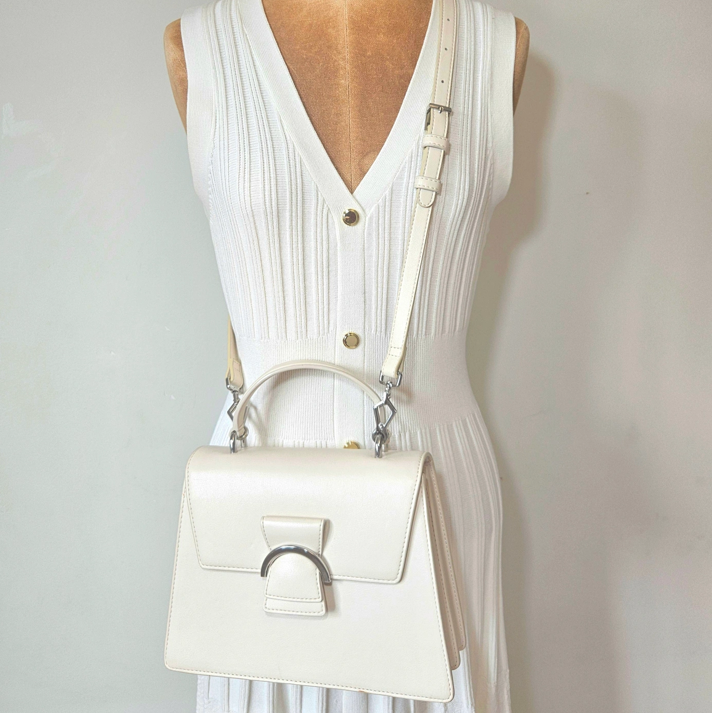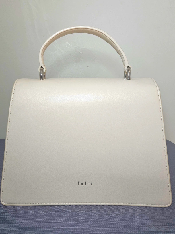 Selling a beautiful Pedro top handle bag in off-white! It's in great condition and ready for a new home. Perfect for adding a touch of elegance to any outfit. The bag features a sleek design with silver-tone hardware and a detachable shoulder strap for versatile styling. Little to no wear and tear on the Hardware and only has marks as pictured.
