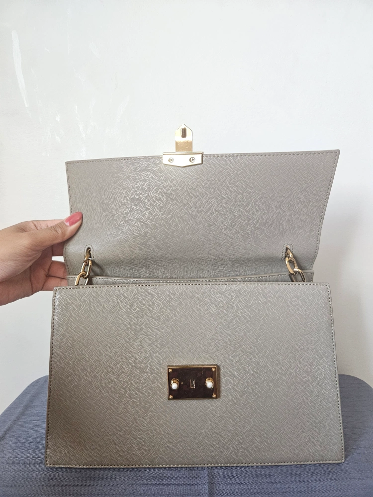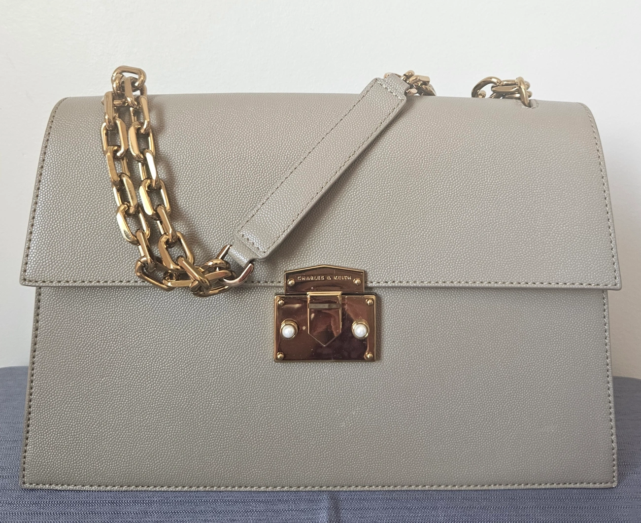 This is a beautiful grey Charles & Keith chain link bag. It's in great condition with little wear and tear on hatdware! The chain link detail adds a touch of elegance, and the neutral colour makes it versatile for any outfit.
