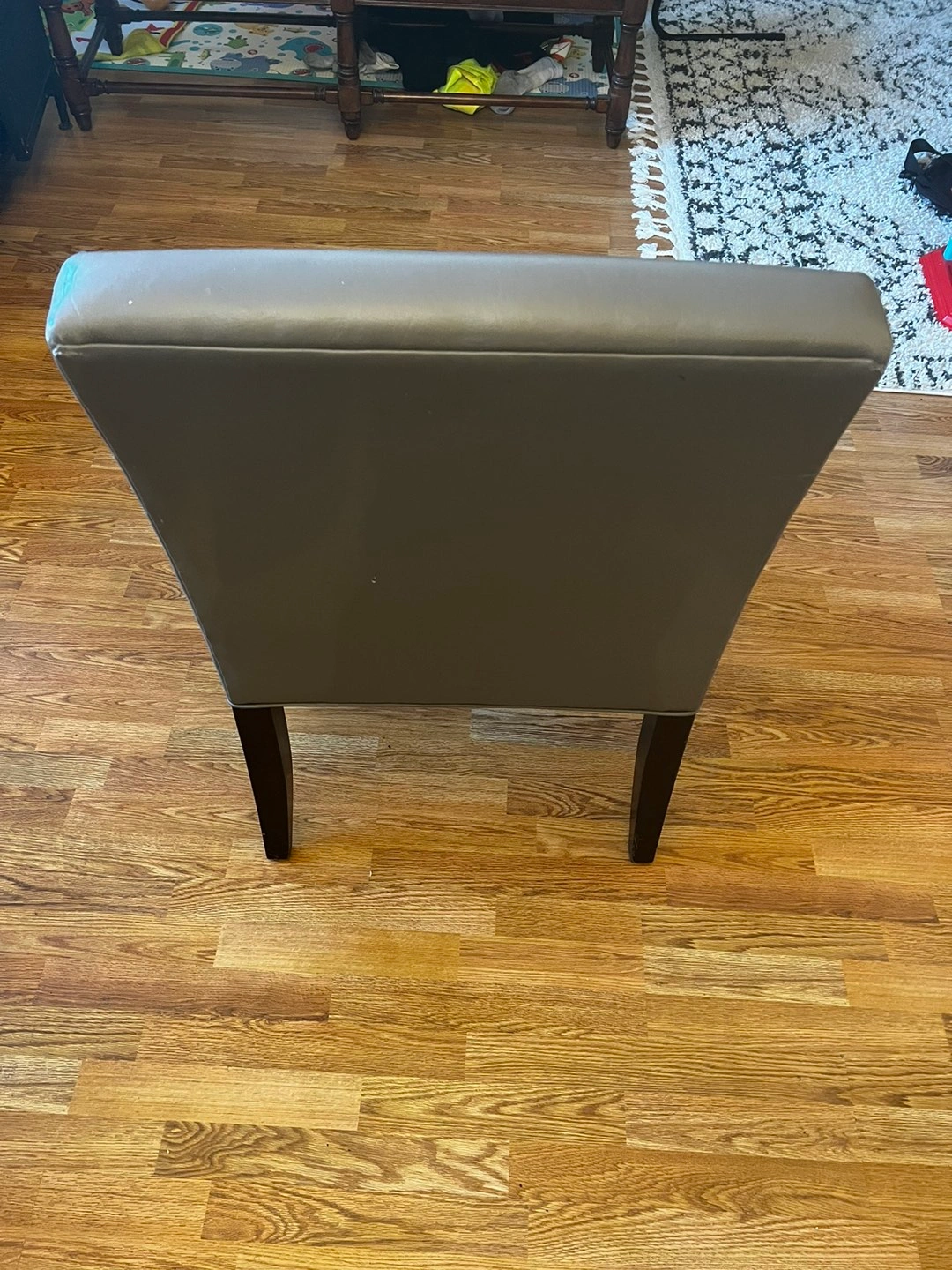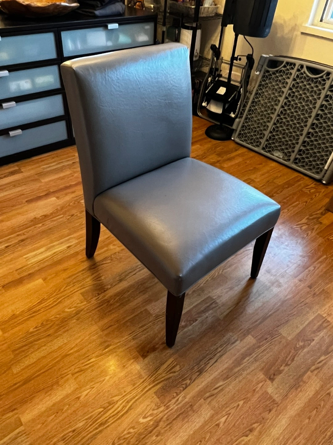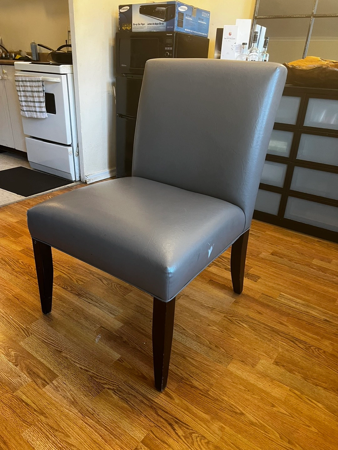 Gently used, a couple chairs have one or two minor aesthetic marks but otherwise chairs are in great condition. Cushioning still firm and legs are quite sturdy. Comes from smoke/pet free home.