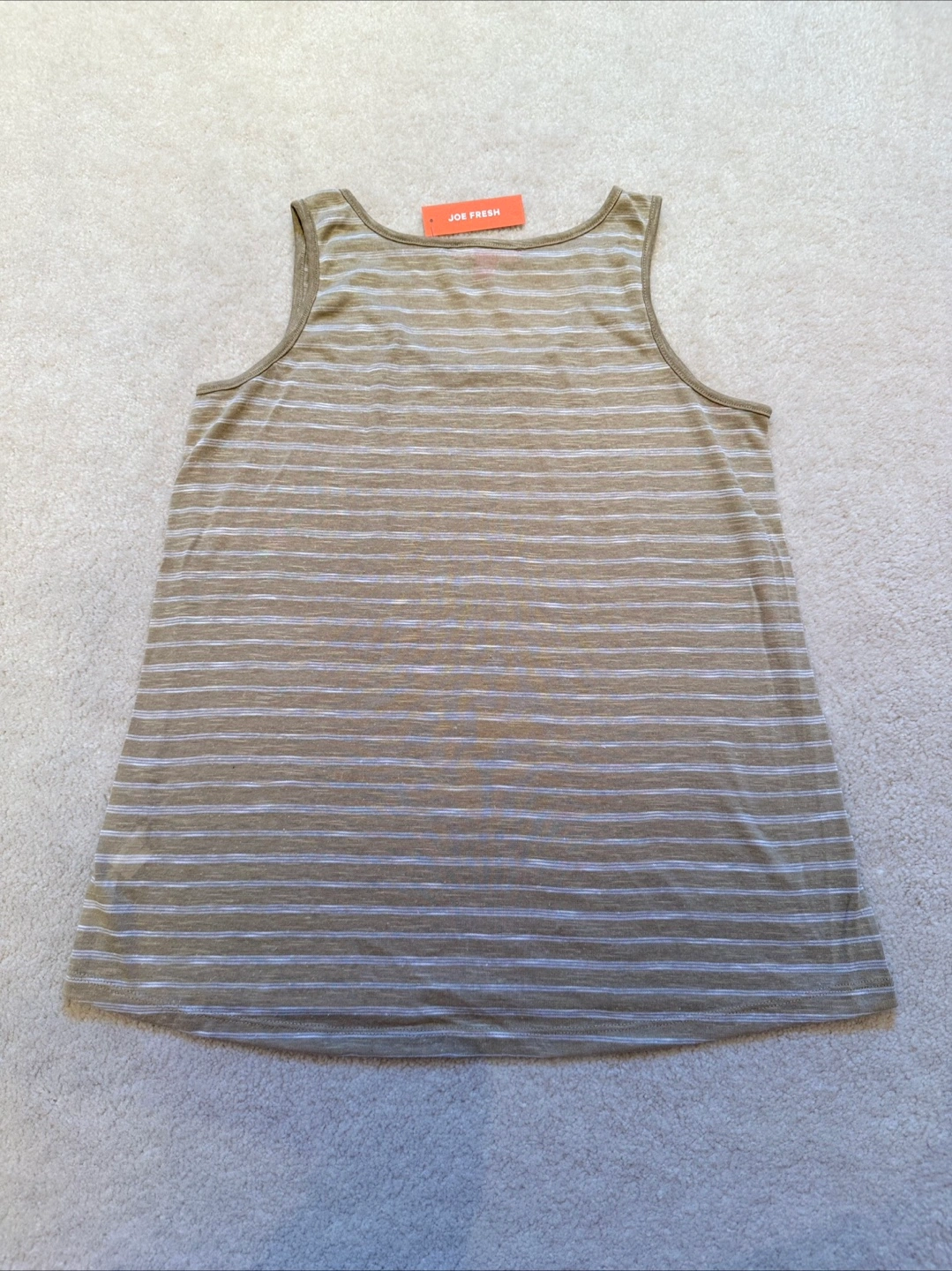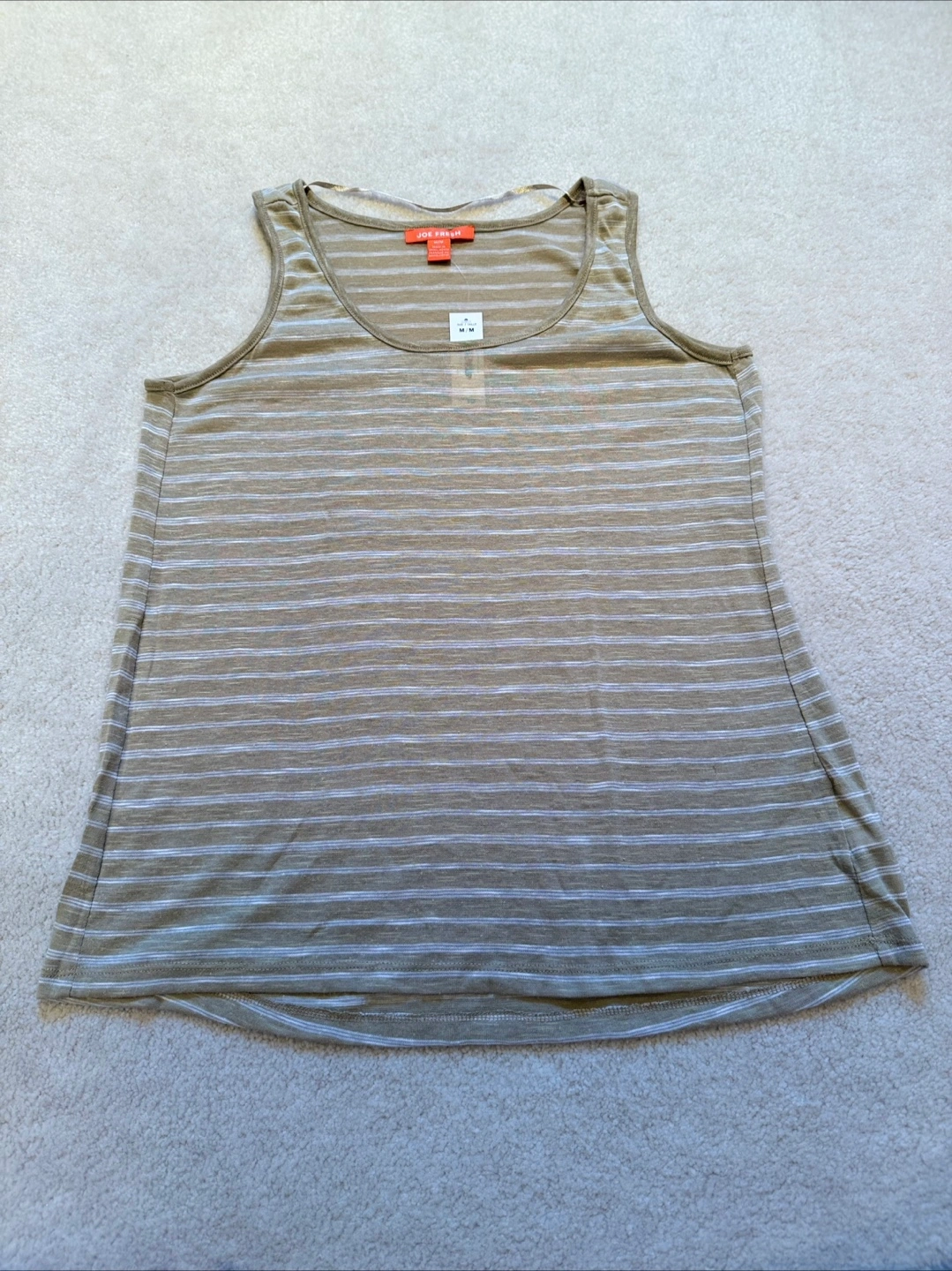 Here's a Joe Fresh striped tank top in size medium. It's new/never worn and still has a tag! The material is lightweight and perfect for warm weather. It features a classic striped pattern in neutral tones.