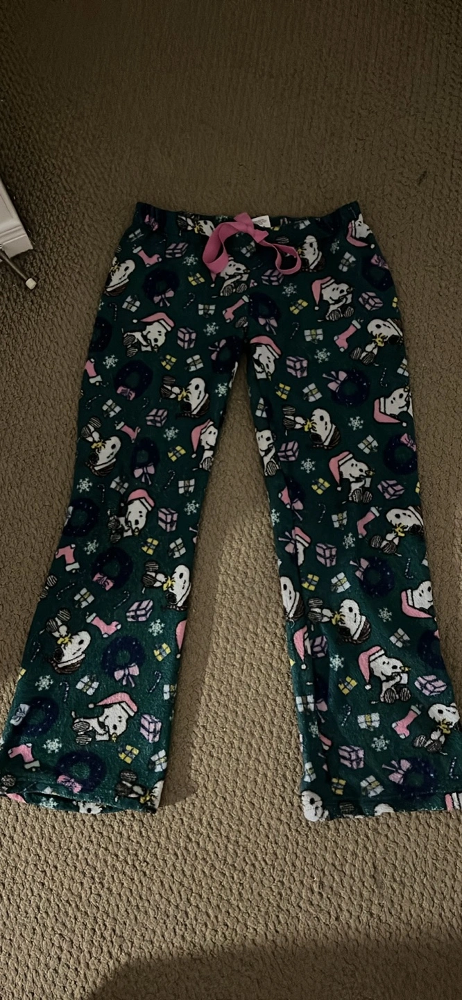 Cozy up with these adorable Peanuts Snoopy pajama pants! They're a size medium and feature a fun all-over print. The material is 100% polyester. They've got a small hole in the groin area, but still have lots of life left!
