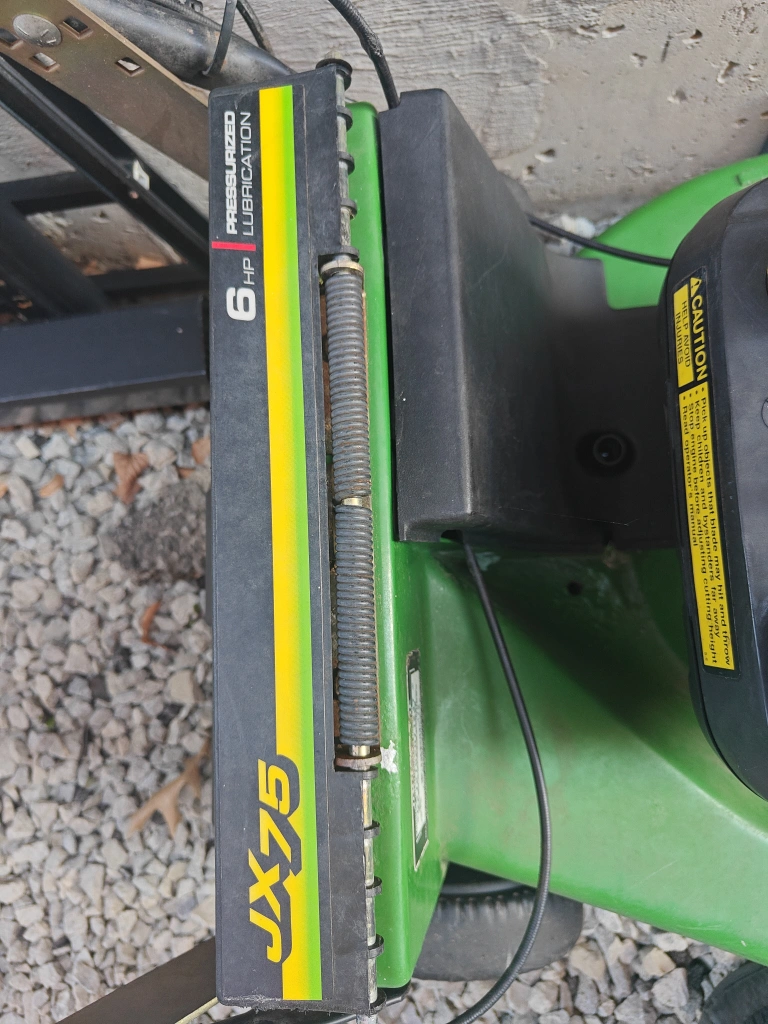 Selling a John Deere JX75 lawn mower. It's a 6 HP model with pressurized lubrication. Perfect for keeping your lawn looking great! needs a little tune up can't keep it running.