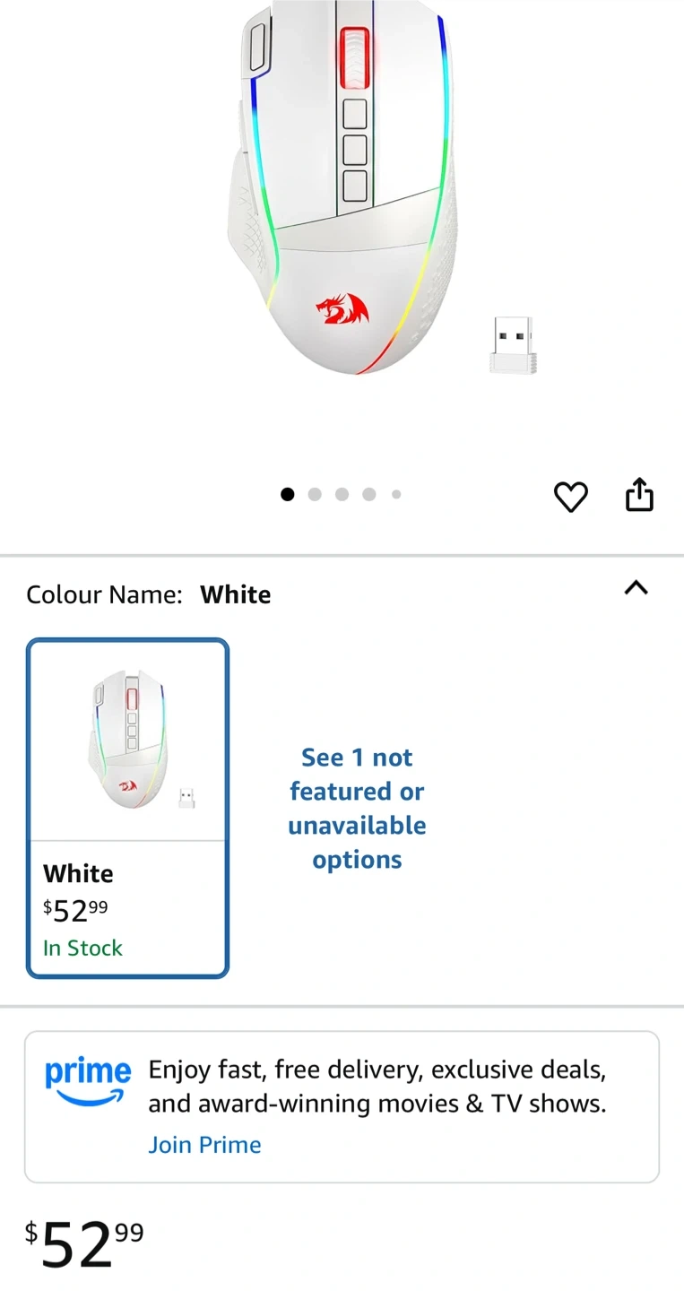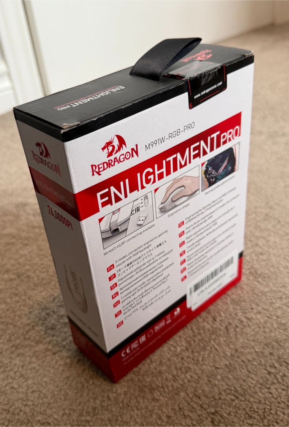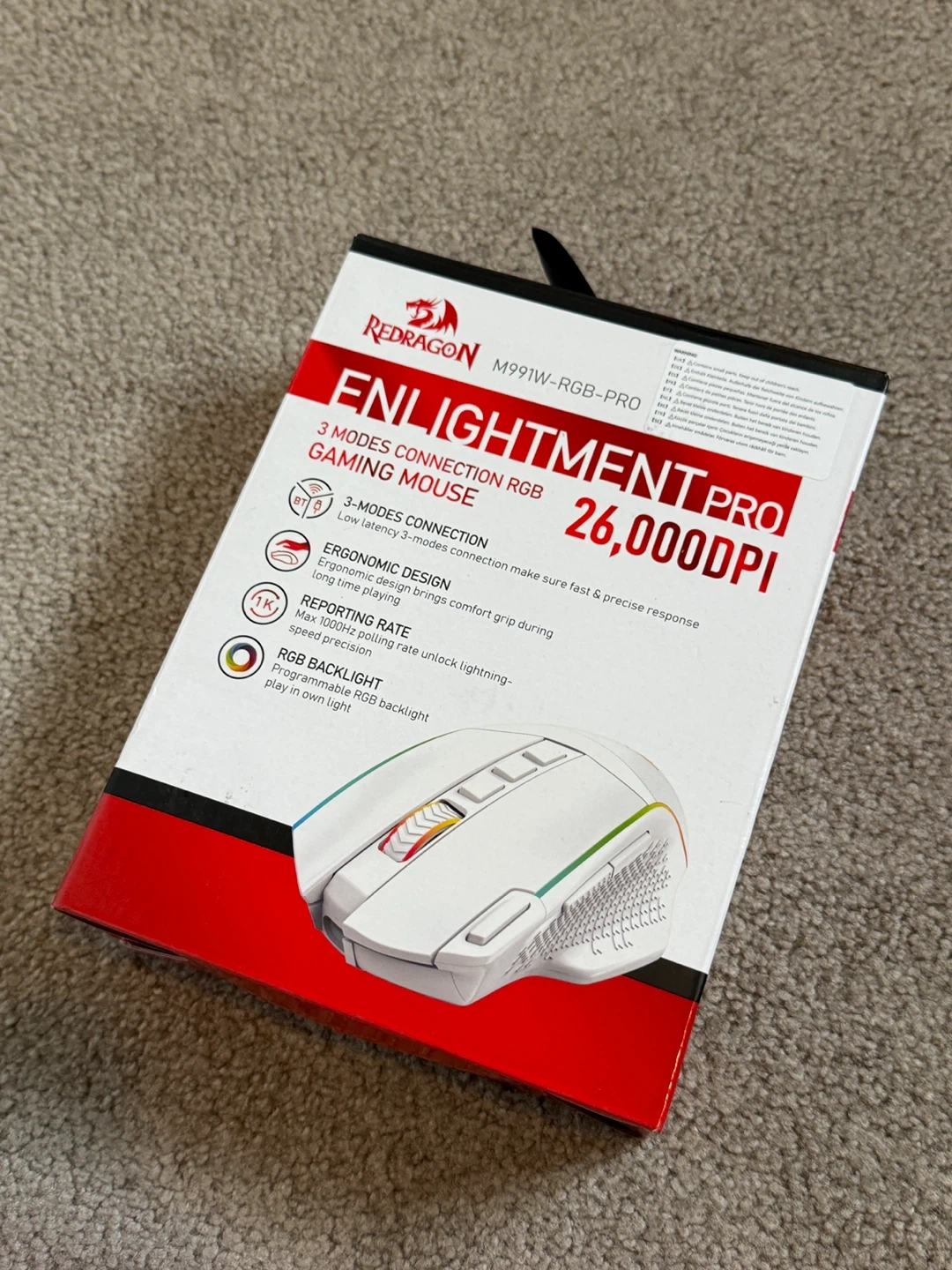 Selling a brand new Redragon M991W-RGB-PRO gaming mouse in white! It comes with the box and all original components. This mouse features: - 3 Modes Connection RGB Gaming Mouse - Ergonomic design for comfort and precision - Up to 26,000 DPI - RGB Backlight Originally bought for $52.99!