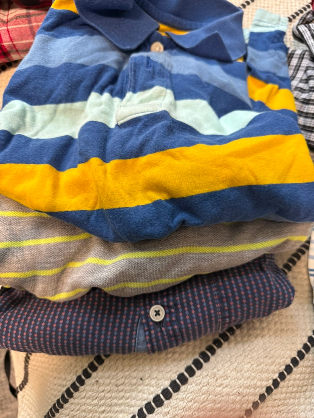 Selling a collection of polo shirts. They come in various colors and patterns, perfect for casual wear. All are in good condition and ready for a new home!