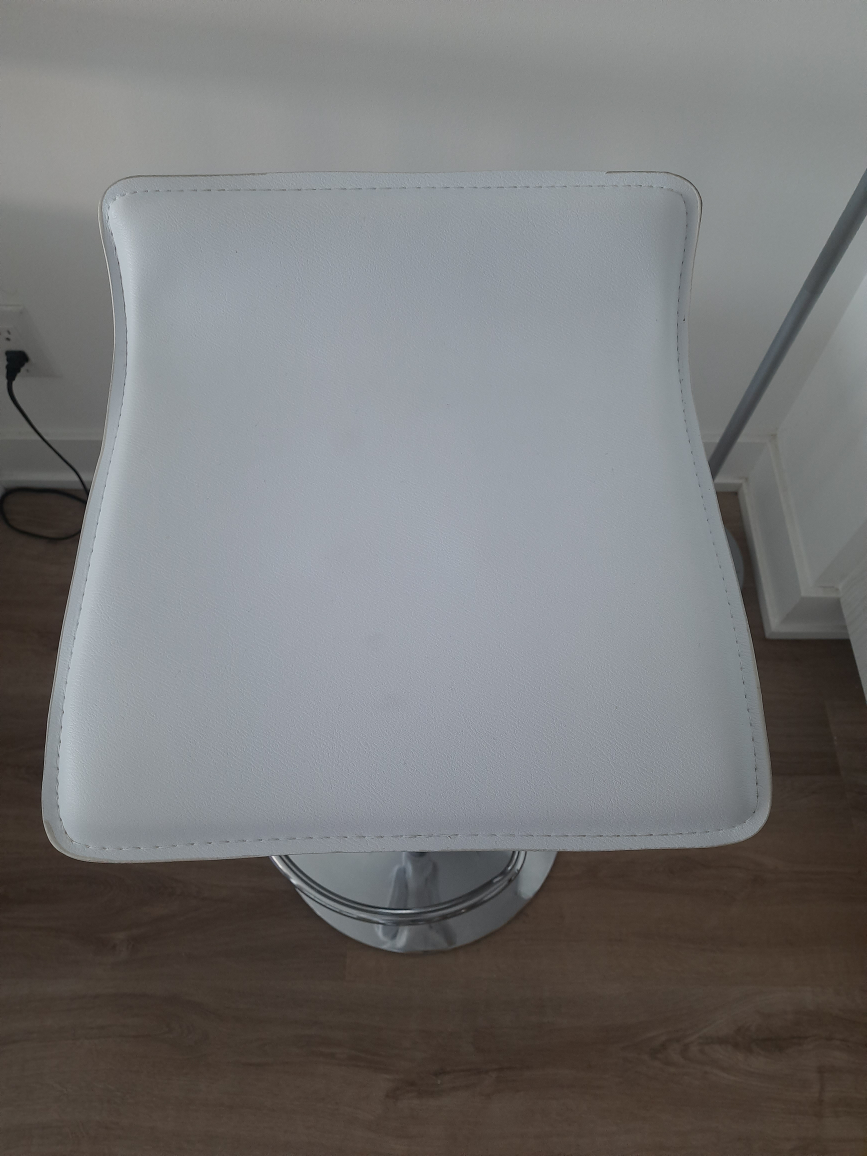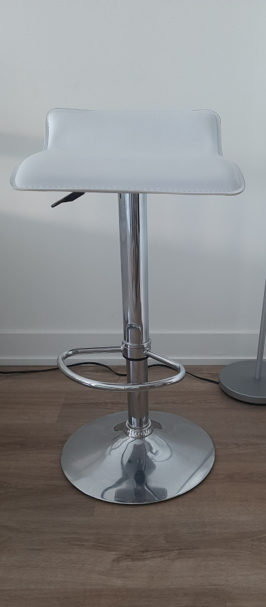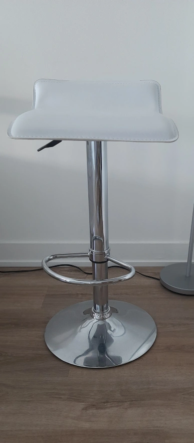 Here's a stylish white bar stool that would look great in any kitchen or bar area! It features: