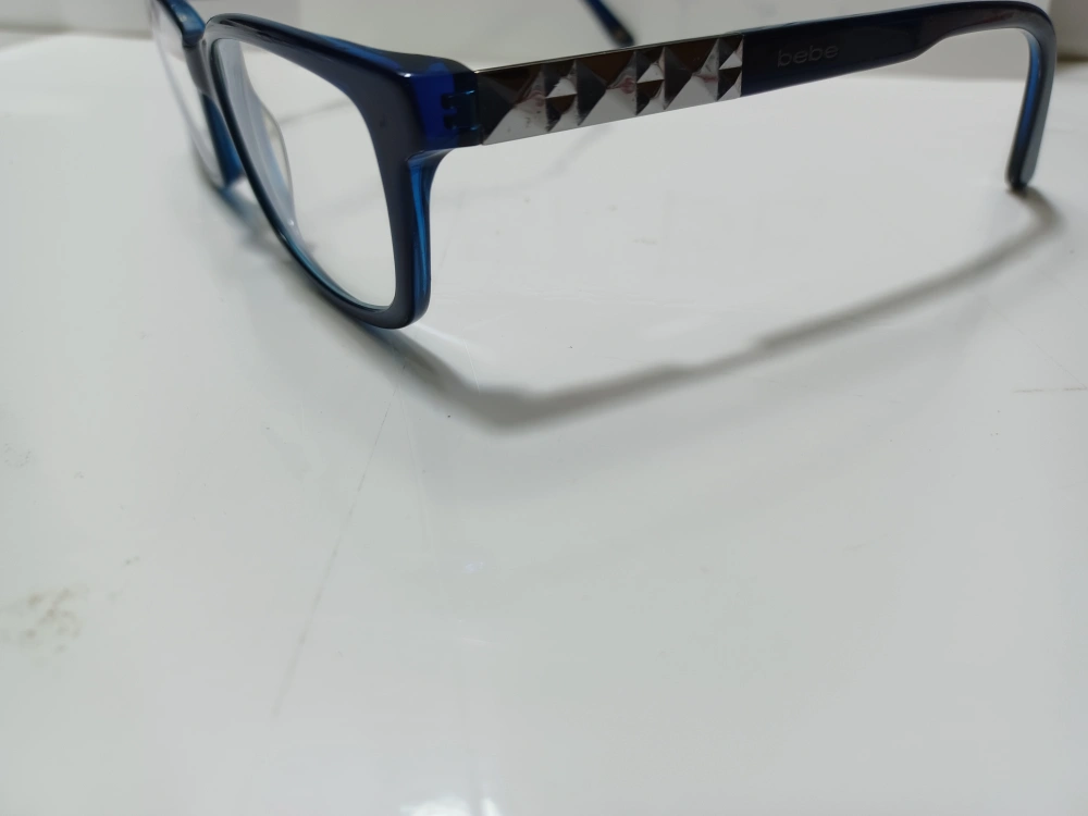 Selling a pair of Bebe eyeglasses in a beautiful midnight blue color. The model number is H14 Midnight, and the size is 50 16 125 They're in great condition and ready for a new home!