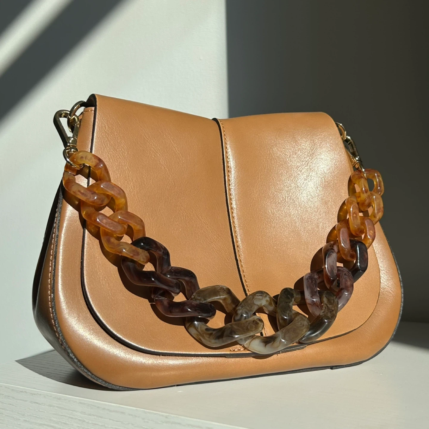 This is a beautiful Gianni Chiarini Firenze leather handbag. It's in great condition and comes with both straps, leather and acrylic for versatility throughout the year.