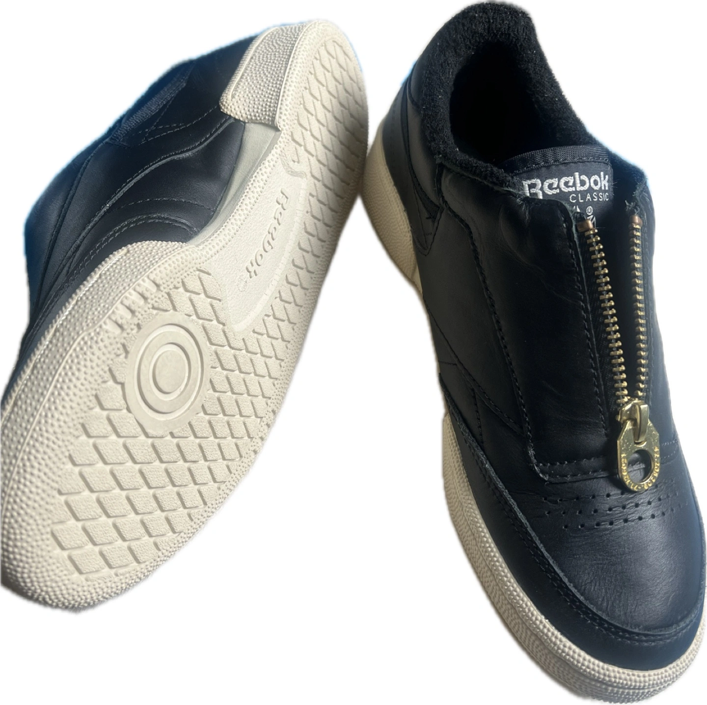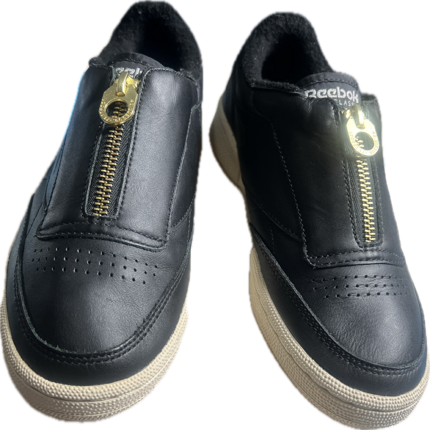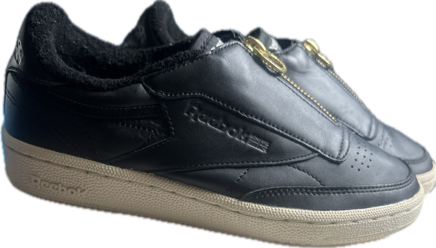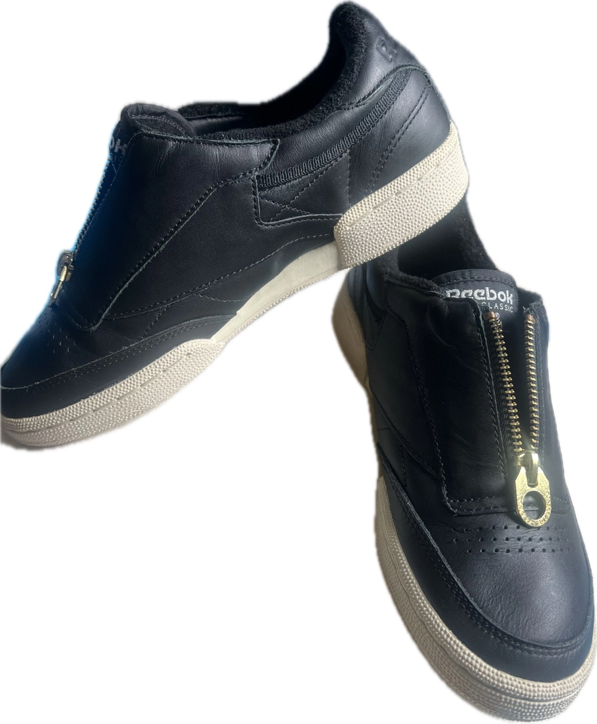 Check out these Reebok Classic MM shoes! They feature a unique zipper design and a sleek black colour. Perfect for adding a touch of style to your everyday look