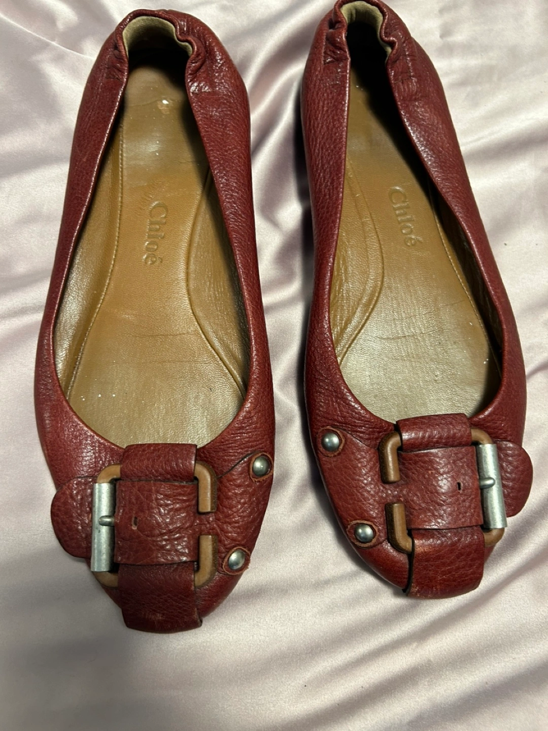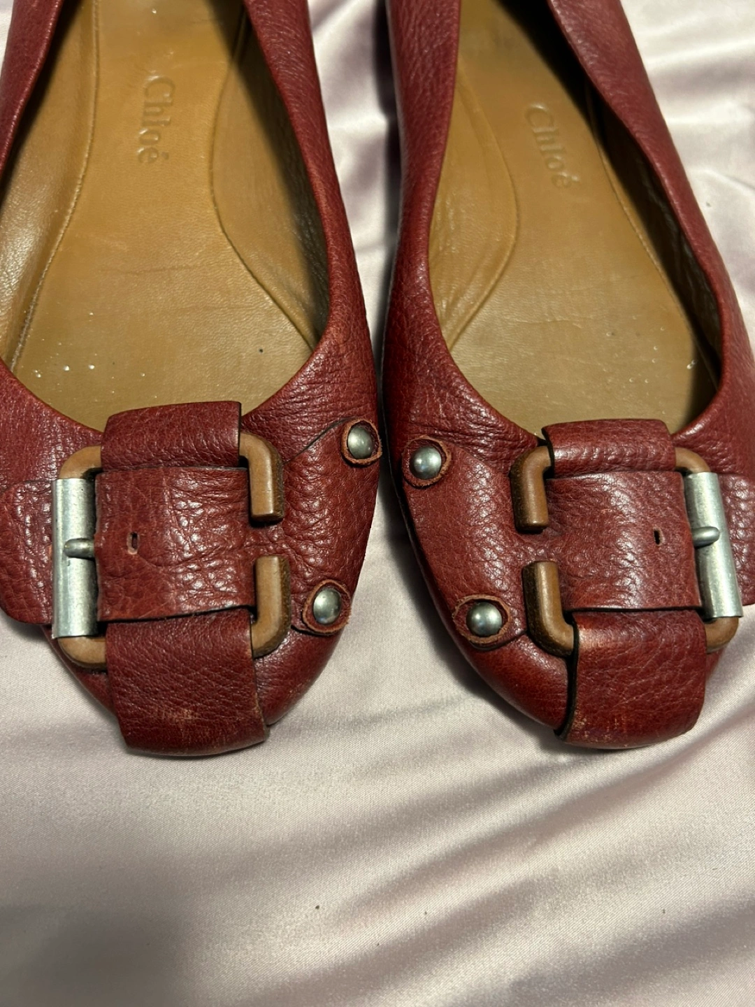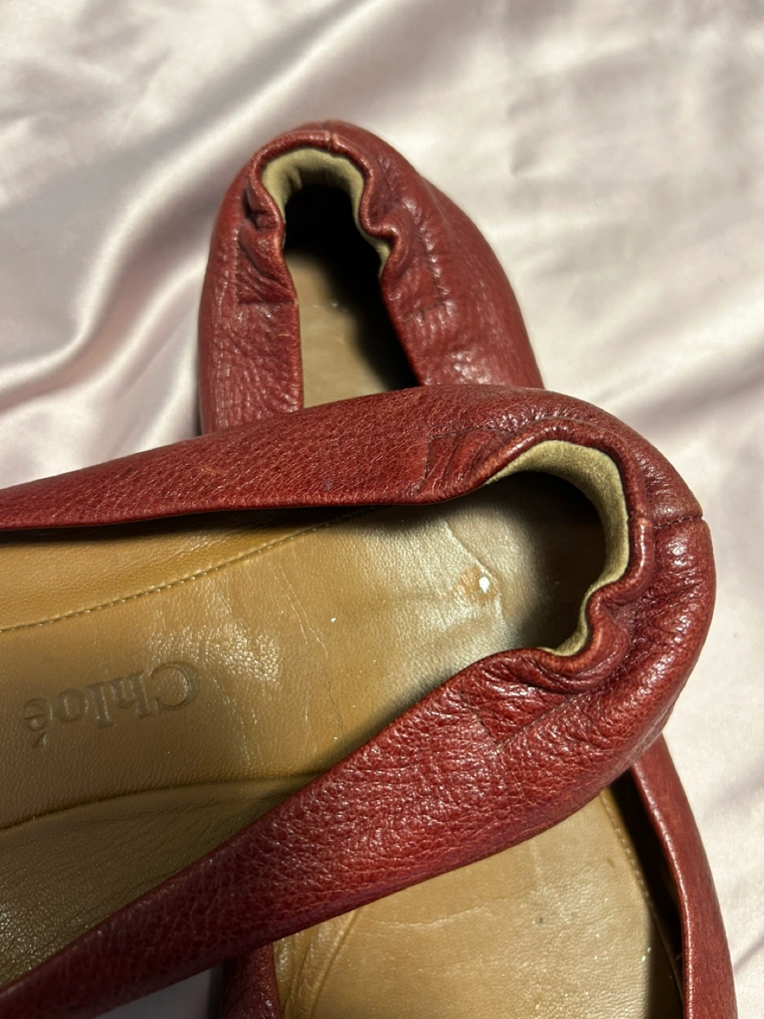 23Selling a pair of Chloé ballet flats in a lovely red leather. They show some signs of wear but are still super stylish and comfortable for everyday wear. Perfect for adding a pop of colour to your outfit!