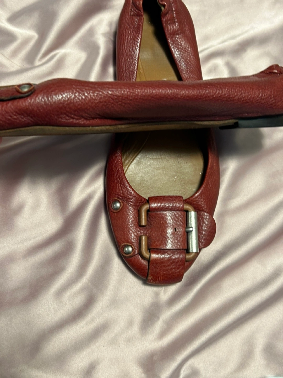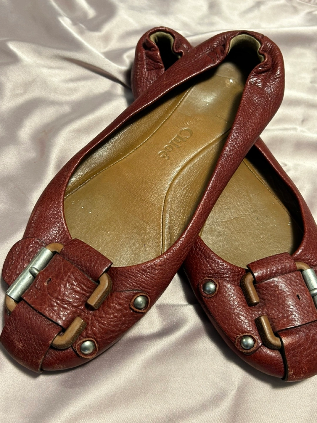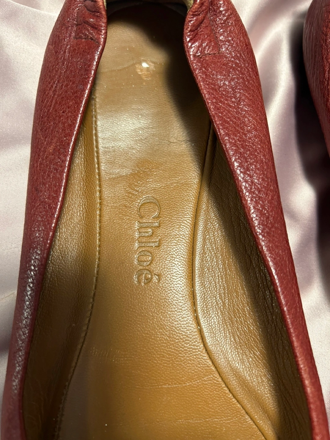 23Selling a pair of Chloé ballet flats in a lovely red leather. They show some signs of wear but are still super stylish and comfortable for everyday wear. Perfect for adding a pop of colour to your outfit!