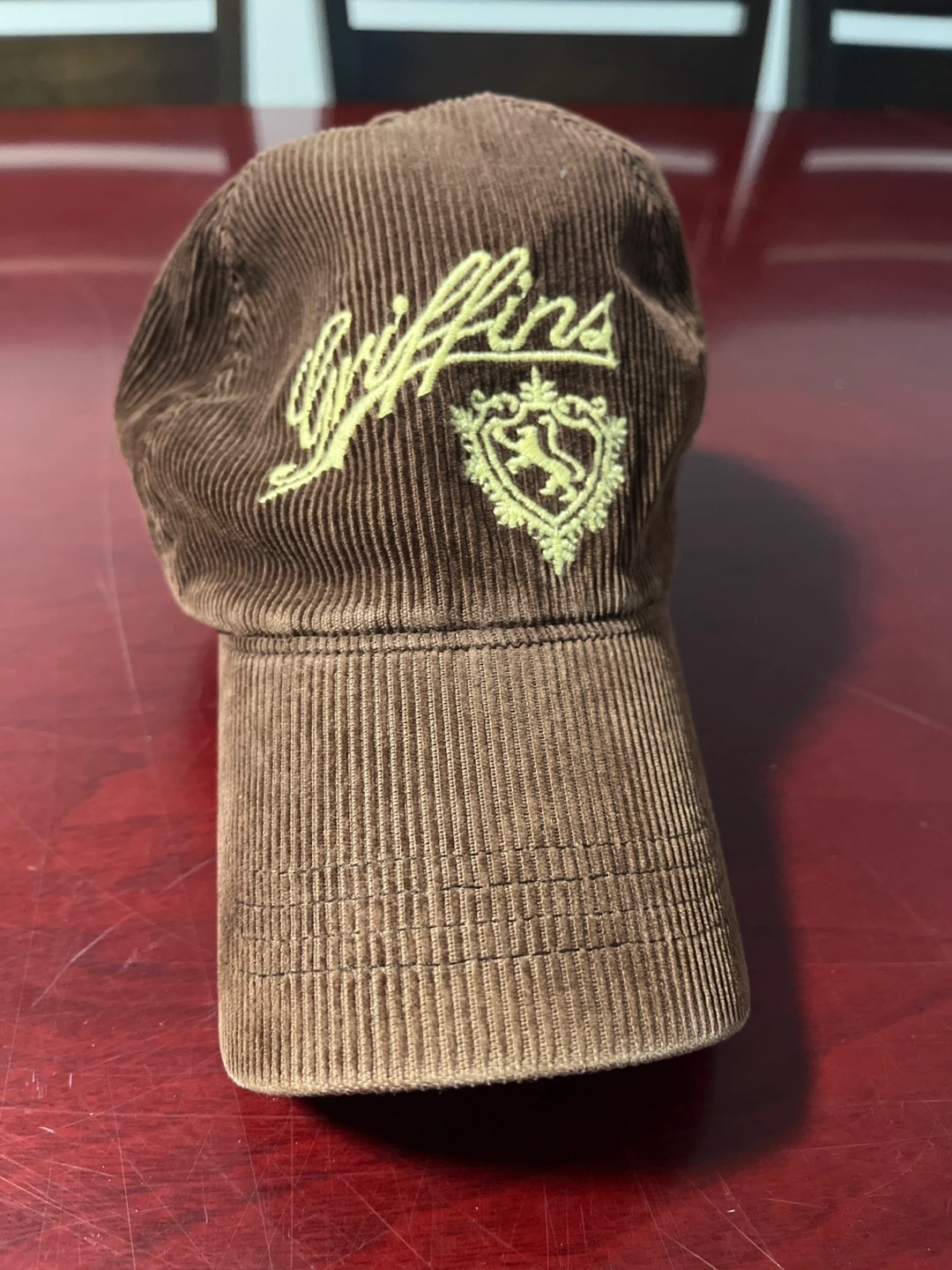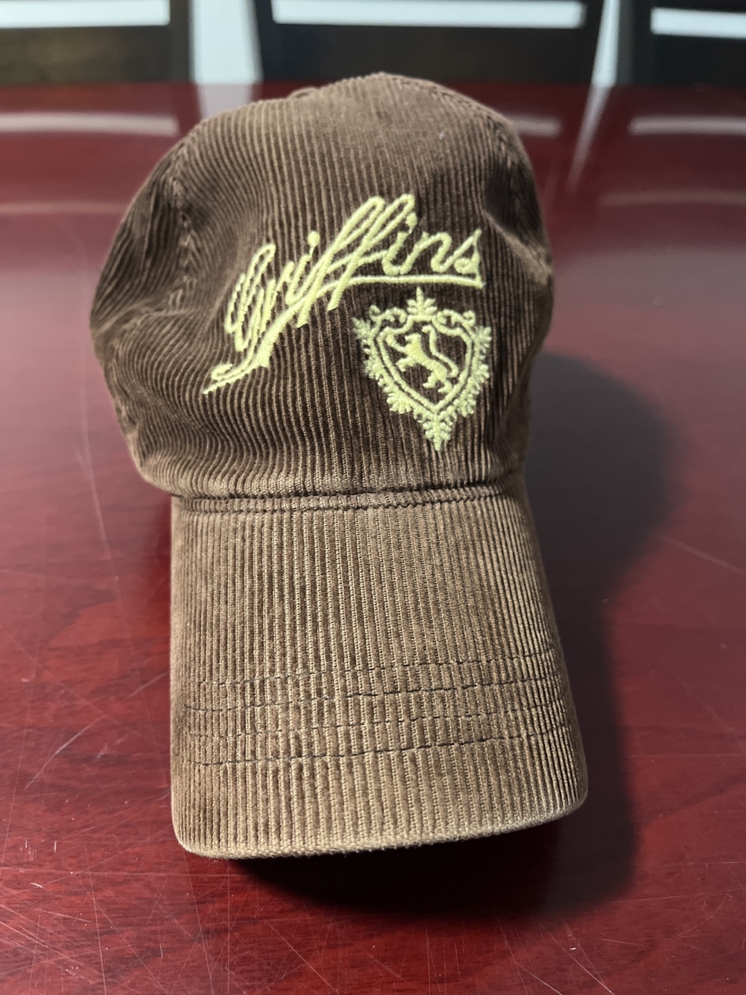 Selling a Griffins brown corduroy hat. It's in great condition and has a cool embroidered Griffins logo. Perfect for adding a touch of vintage style to your wardrobe!