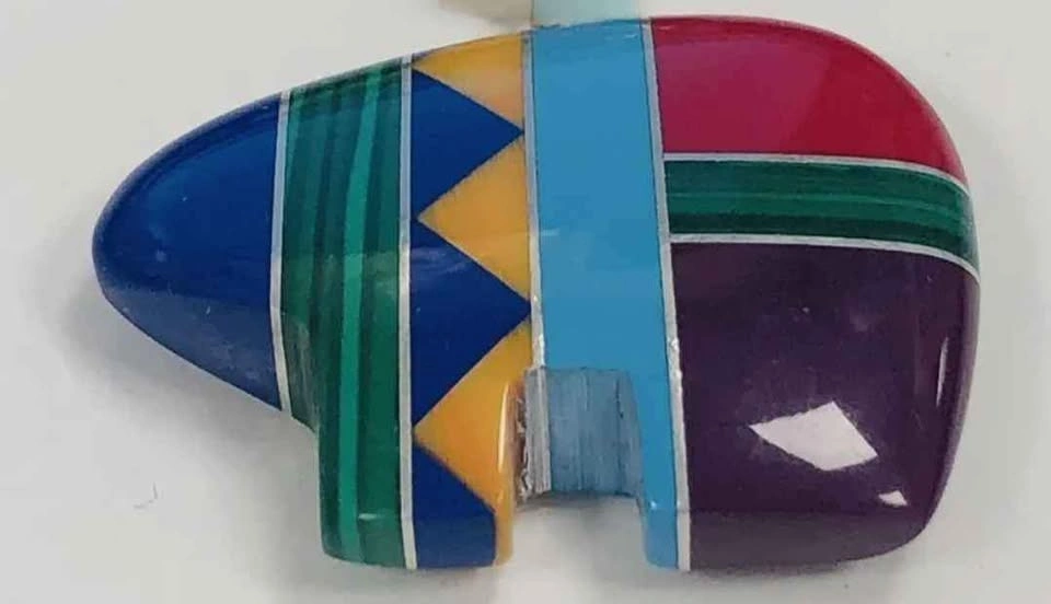 Zuni Fetish Silver and gemstone Inlay Totem Bear