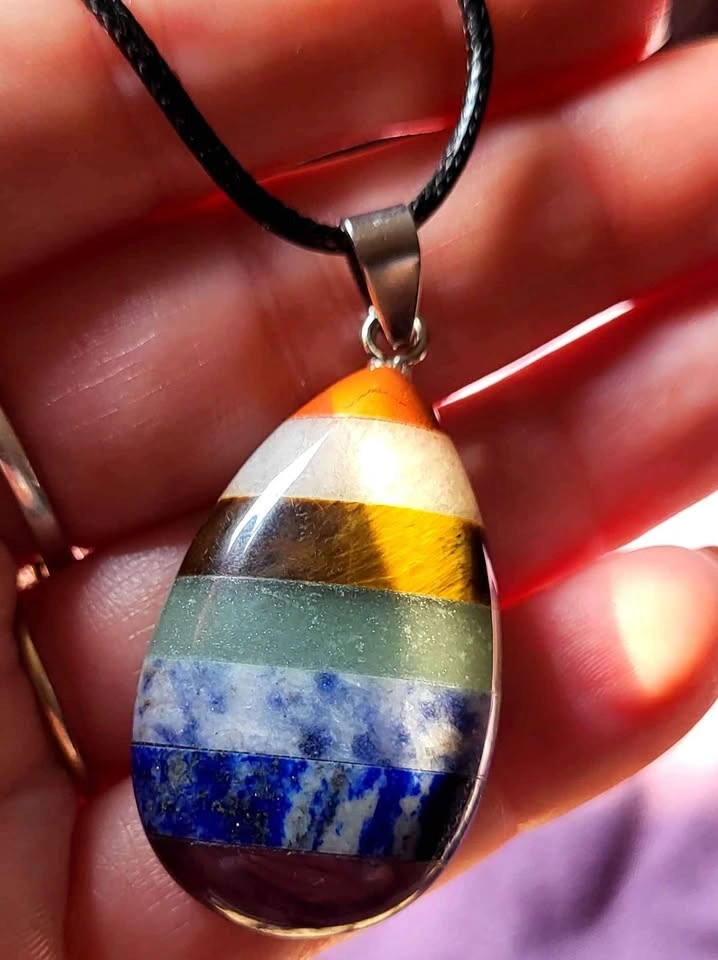 Crystal Chakra teardrop pendants with black cord necklace. Each of these pendants has the following crystals; red jasper, clear quartz, tiger eye, green aventurine, blue spot jasper, sodalite and amethyst. Pick up is North East Edmonton any weekday after 1pm daily. Weekend pick ups can be arranged prior to that weekend. I do not hold any items without payment in full and a set date and time scheduled for pick up. Otherwise everything I have listed for sale currently is FCFS. Price listed is firm. I accept etransfer or cash at the door. I do not carry any cash to give change so please make sure you have the exact amount at the time of picking up your item. I do not trade or barter. My items are for sale only. Price listed is firm. I do not give discounts as I am not a store. All of my items are already priced much lower than any retail store or anywhere else that you may find. Please note: I No longer ship or mail out any items at all due to a couple of dishonest buyers. I am an honest person and a honest seller and my rating and reviews here on marketplace reflect such. Although there is one single negative rating on my profile here that was given by someone I did not even sell anything to or purchase anything from yet, there is no way to report it to anyone here on marketplace to have it removed so it is stuck there unfortunately. I have alot of different crystals and specimens that are not listed so if you are looking for something special that I don't have listed, please feel free to message me and ask. *** IF THIS AD IS VISIBLE THEN THIS ITEM IS AVAILABLE ** I remove all ads when an item does get sold.
