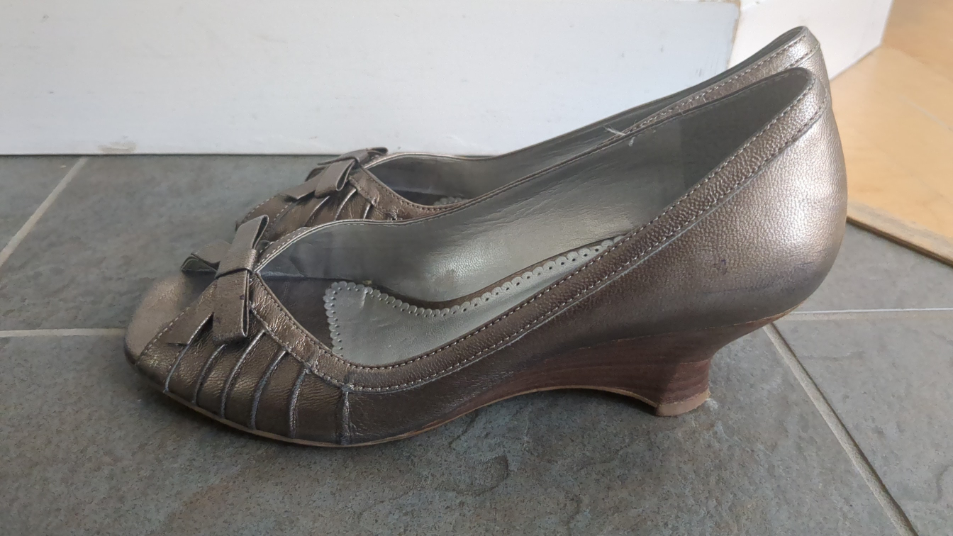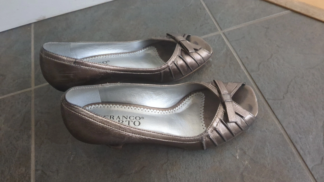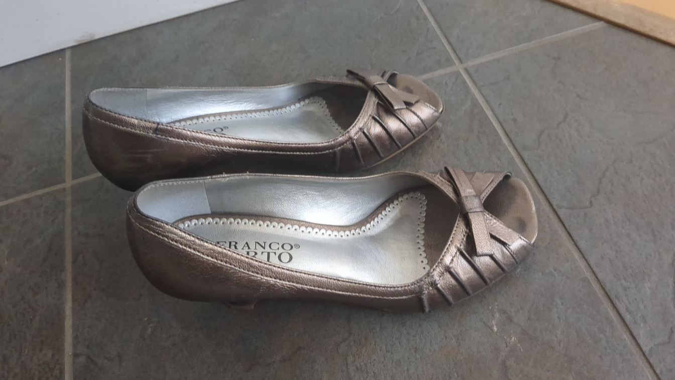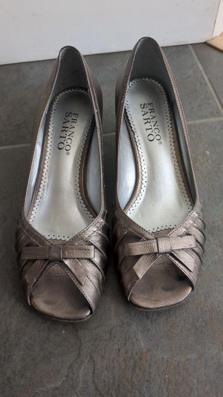These Franco Sarto wedge heels are in a lovely bronze colour, perfect for dressing up or down! They feature a cute bow detail and are super comfy to wear. A stylish addition to any wardrobe! Porch Pick up.