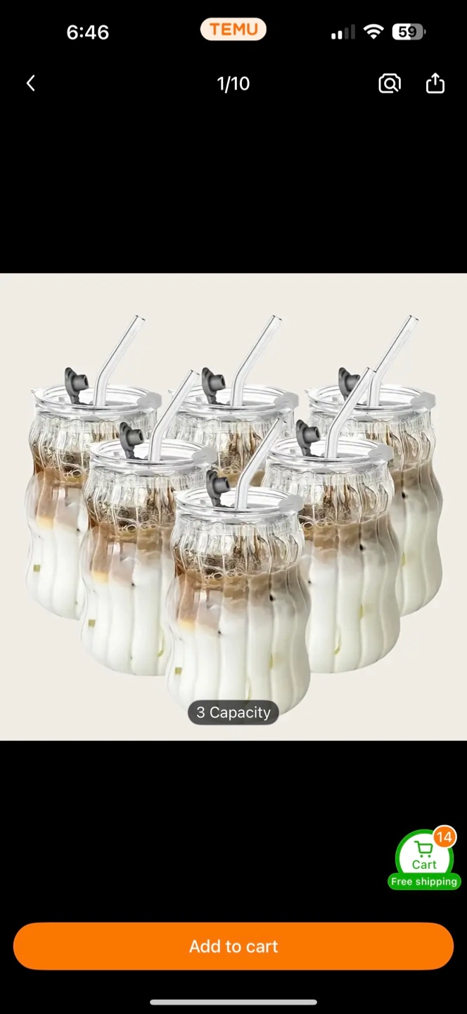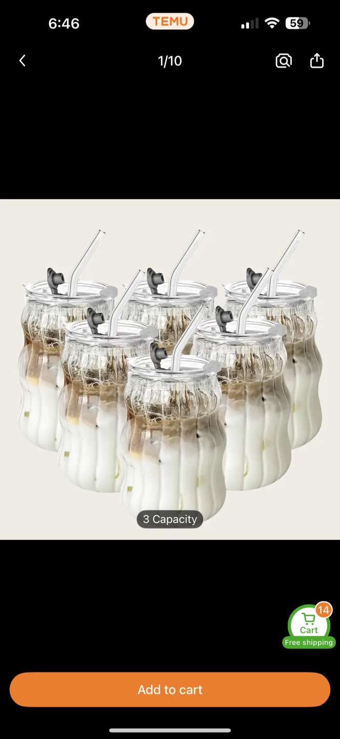 I'm selling a set of 6 ribbed glass cups that come with straws and lids! They're perfect for iced coffee, latte, water, matcha, or juice. These drinking glasses are 18oz, and they are made from ribbed glass