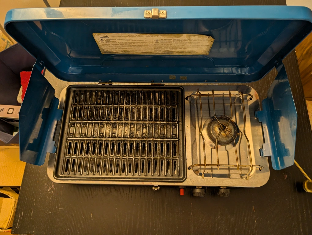 Selling a Broadstone camp stove and grill combo! It's in good condition and ready for your next camping trip or outdoor adventure. This combo unit offers both a stove burner and a grill surface, giving you flexibility for cooking in the great outdoors. Perfect for camping, picnics, or backyard barbecues!