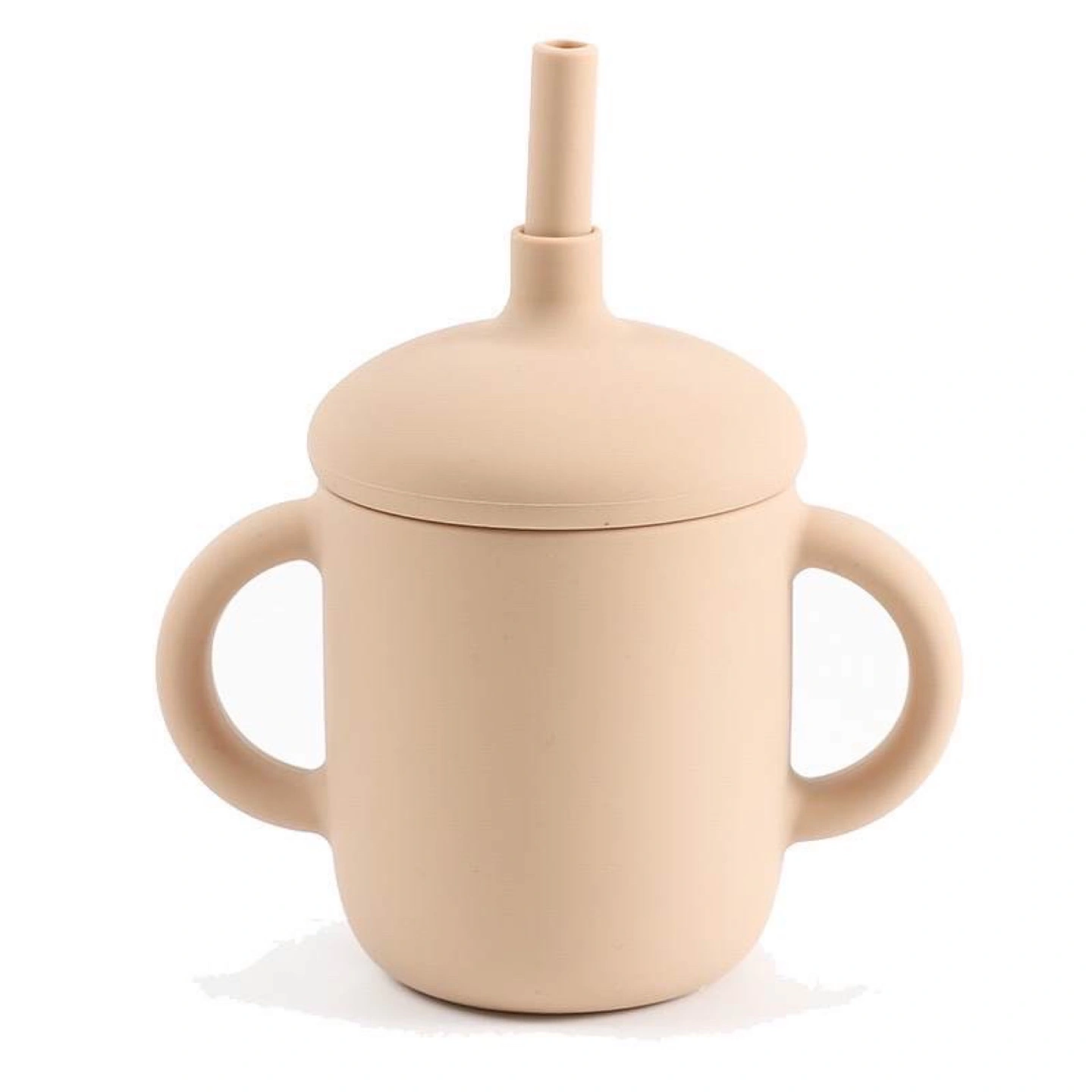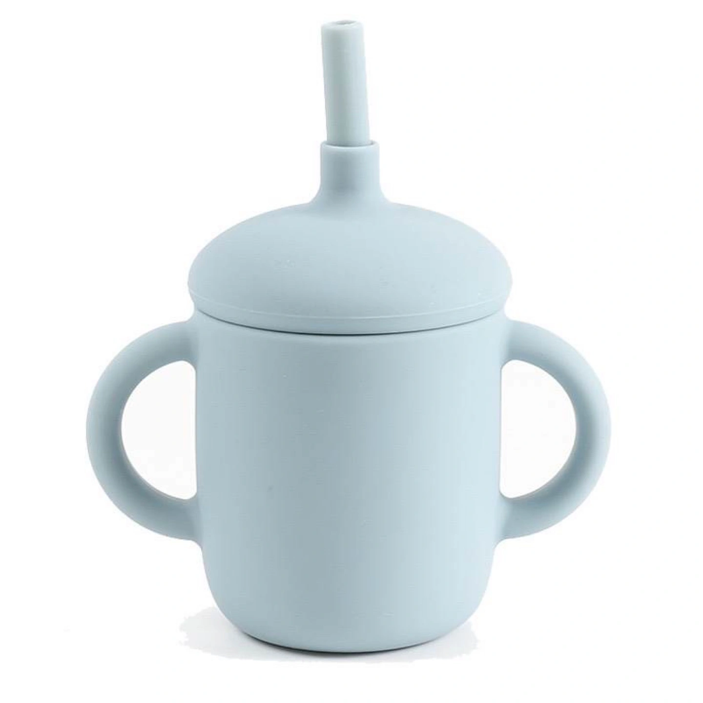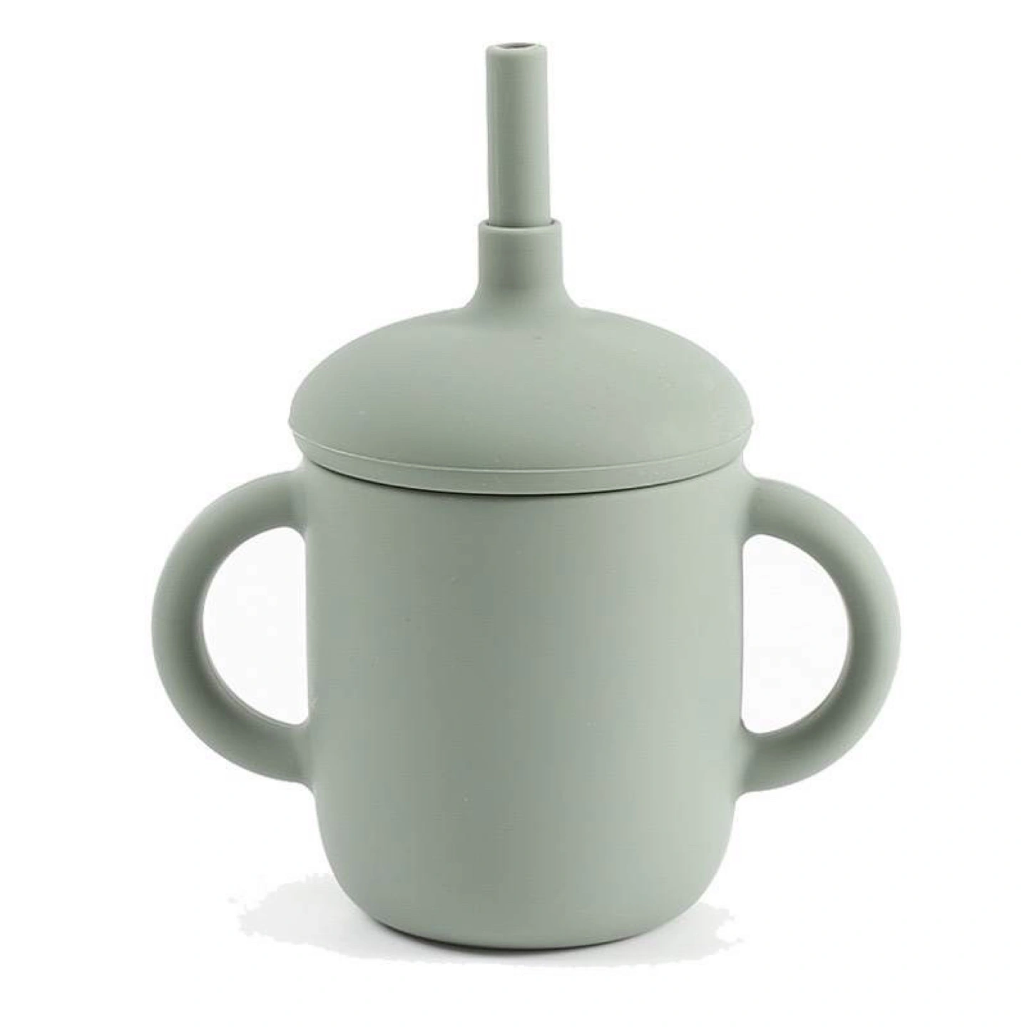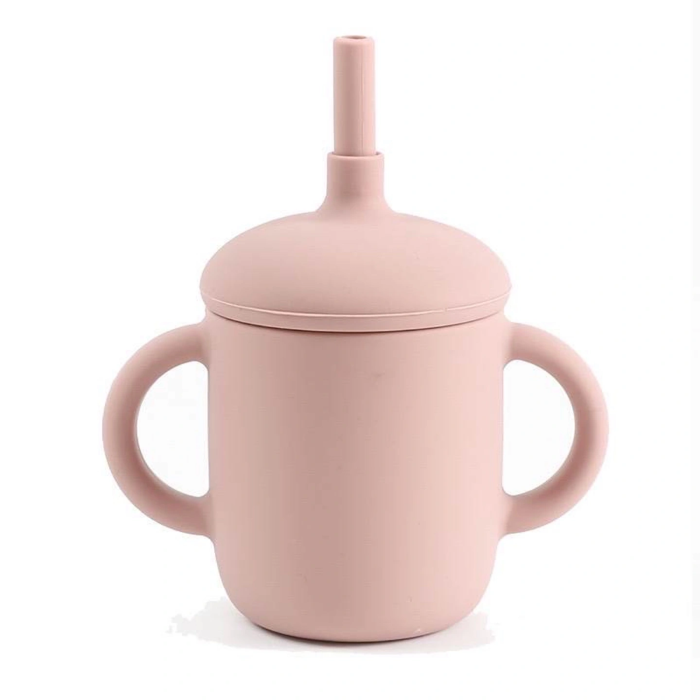 This is a silicone sippy cup with a straw. It's perfect for toddlers learning to drink on their own. It comes in a variety of colors! It is food grade silicone and BPA free. Random colors.