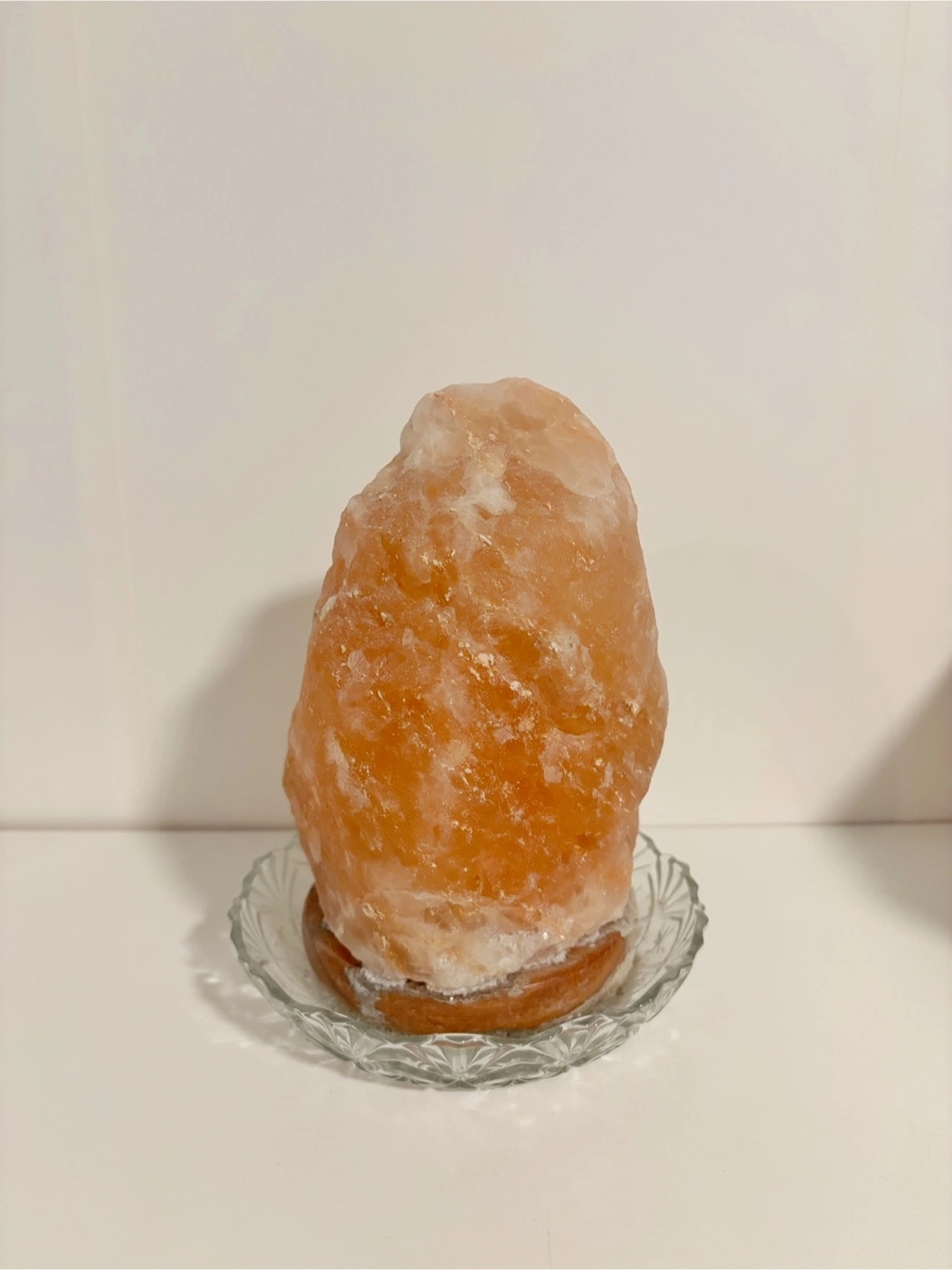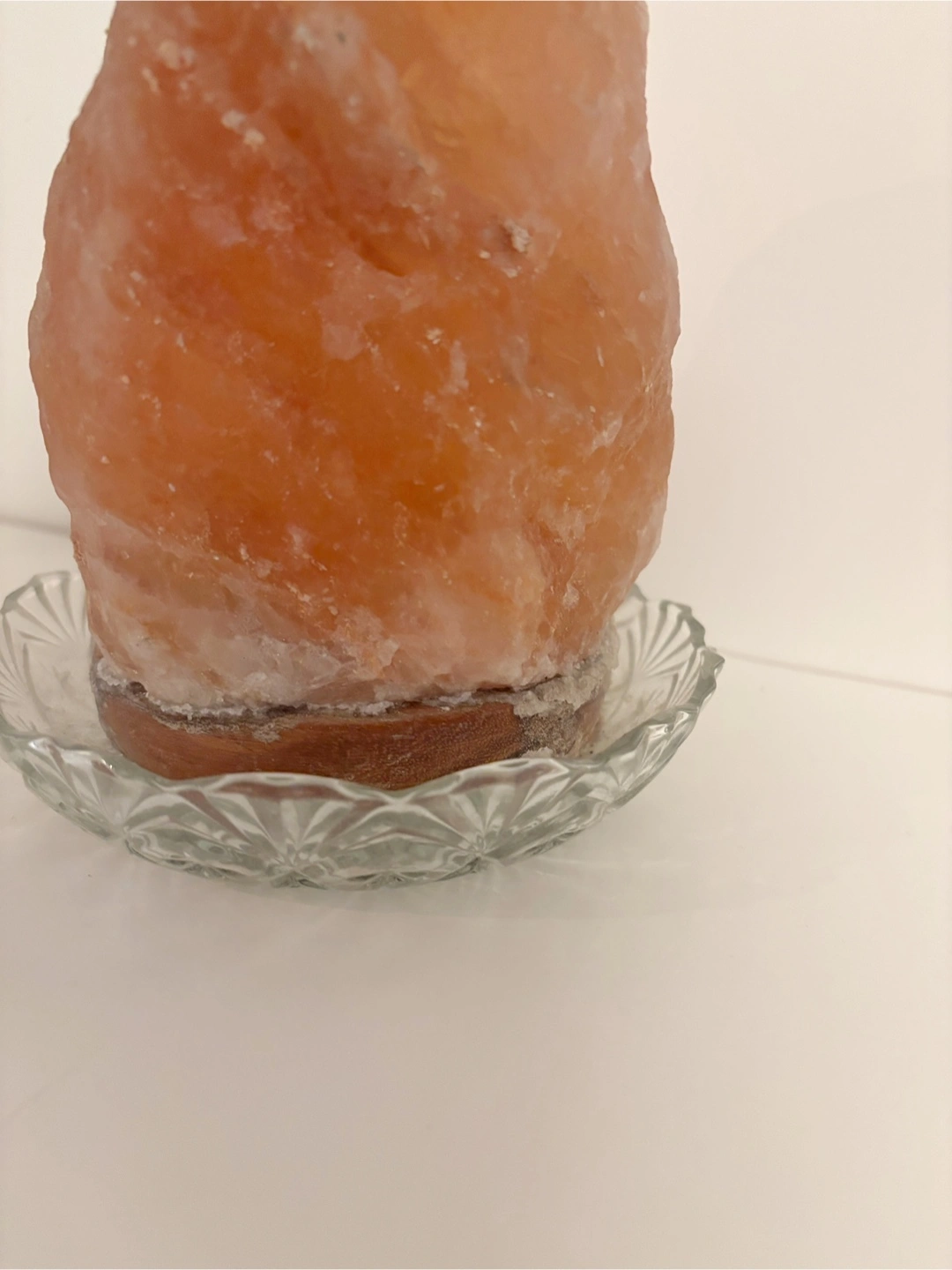 Selling a lovely Himalayan salt crystal in a crystal dish for some elegance. Perfect for creating a relaxing atmosphere in any room of your home or for adding a touch of decor on a table or a shelf.