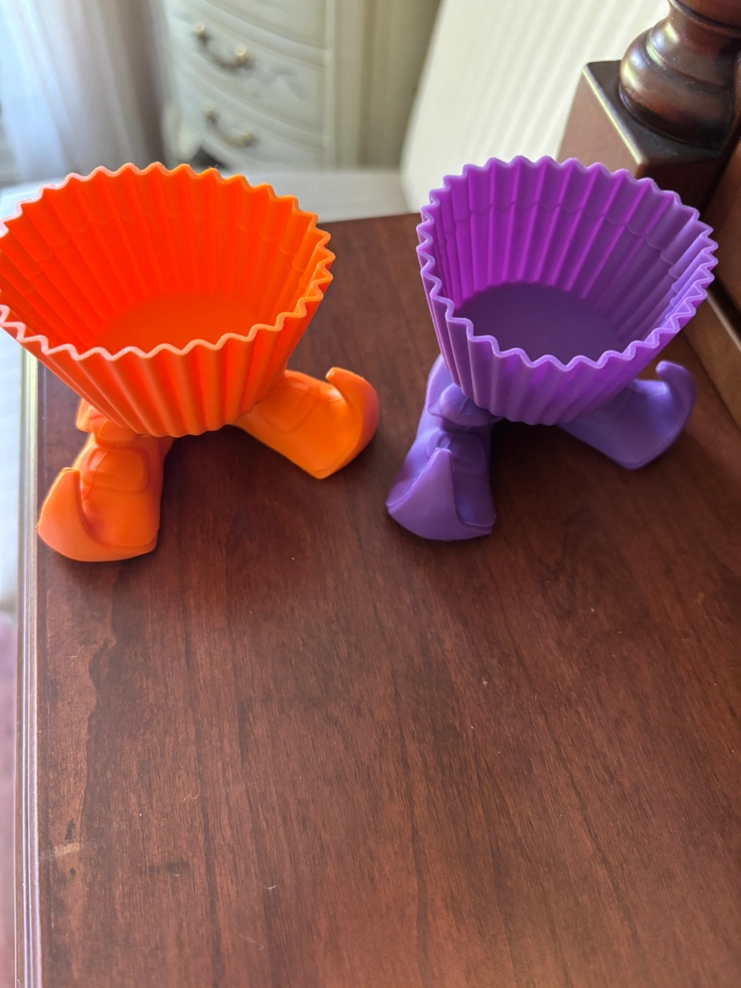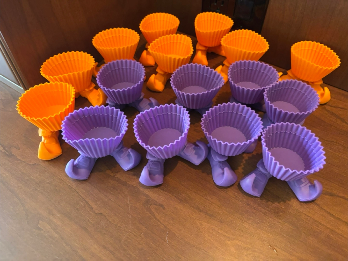 Never used. 16 Wilton’s silicone witches Silly Feet, 8 orange, 8 purple. Put your cupcakes or muffins in them for a fun presentation. Won’t split up