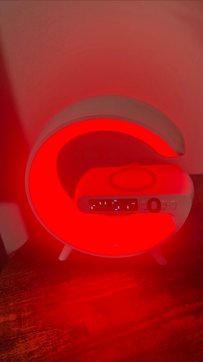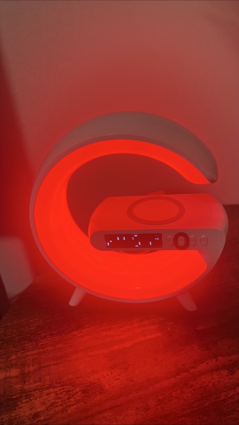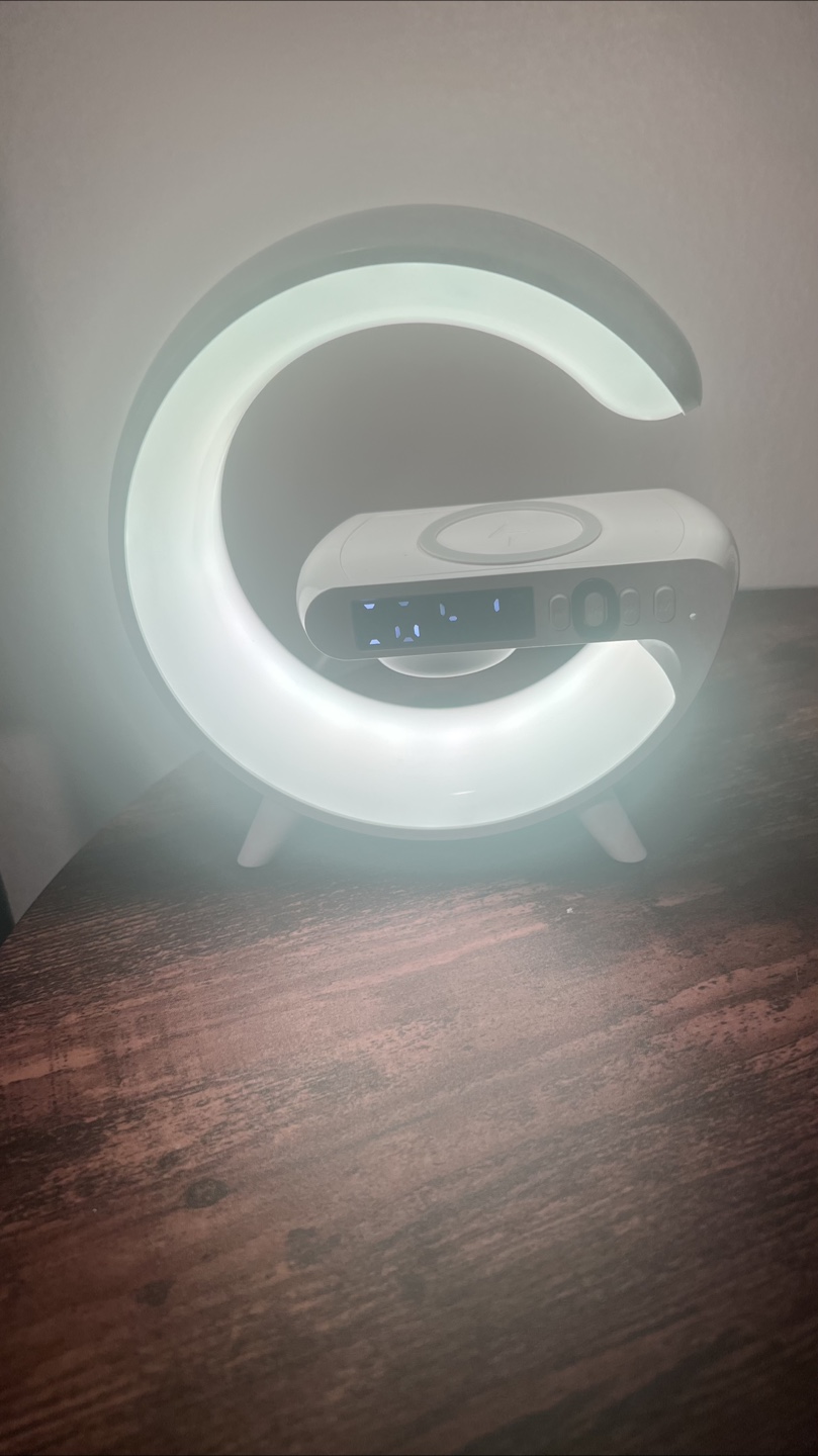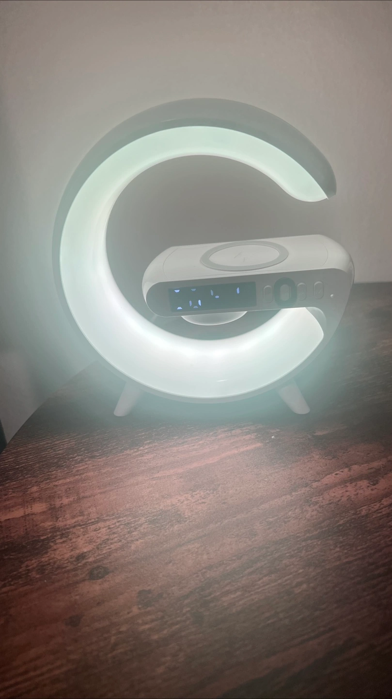 Selling two cool lamps! One is a basketball-shaped LED lamp that adds a fun glow to any room. The other is a modern G-shaped lamp with a built-in wireless charger and digital clock, perfect for your bedside table or desk