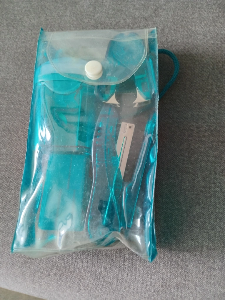 I'm selling a cute turquoise stationery set! It comes with a stapler, staple remover, tape dispenser, and a case to keep everything organized. Perfect for students or anyone who loves a pop of colour on their desk