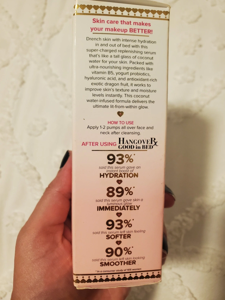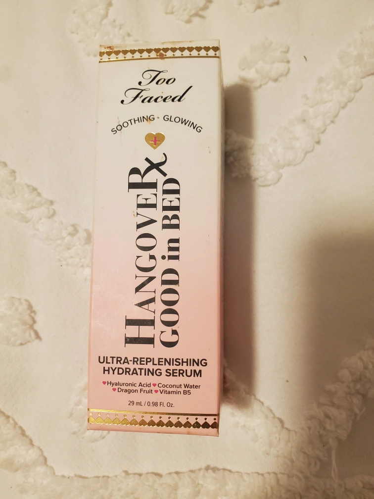I'm selling a Too Faced Hangover Good in Bed Ultra-Replenishing Hydrating Serum. This serum contains hyaluronic acid, coconut water, dragon fruit, and vitamin B5. It helps to hydrate and replenish the skin, leaving it feeling soft and smooth. It comes in a 29 mL / 0.98 Fl. Oz size.