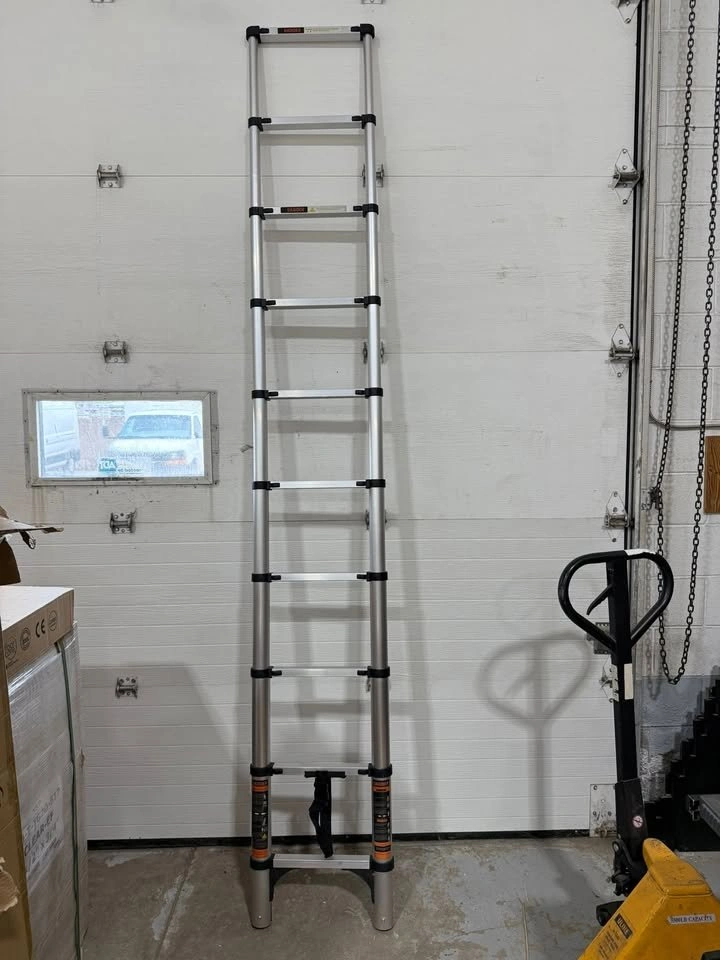 23Get to those hard-to-reach places with this brand new, open-box telescoping aluminum ladder! Lightweight yet heavy-duty, it extends to 9.5 feet and holds up to 330 lbs. The stabilizer bar, top hook, and anti-slip design ensure extra safety. It's retractable and space-saving, making it perfect for RVs, home repairs, or outdoor work. ⚠️ Final sale – no returns, no warranty. Check and test on pickup. 📍 Pickup in St. Catharines – North. Available until sold.