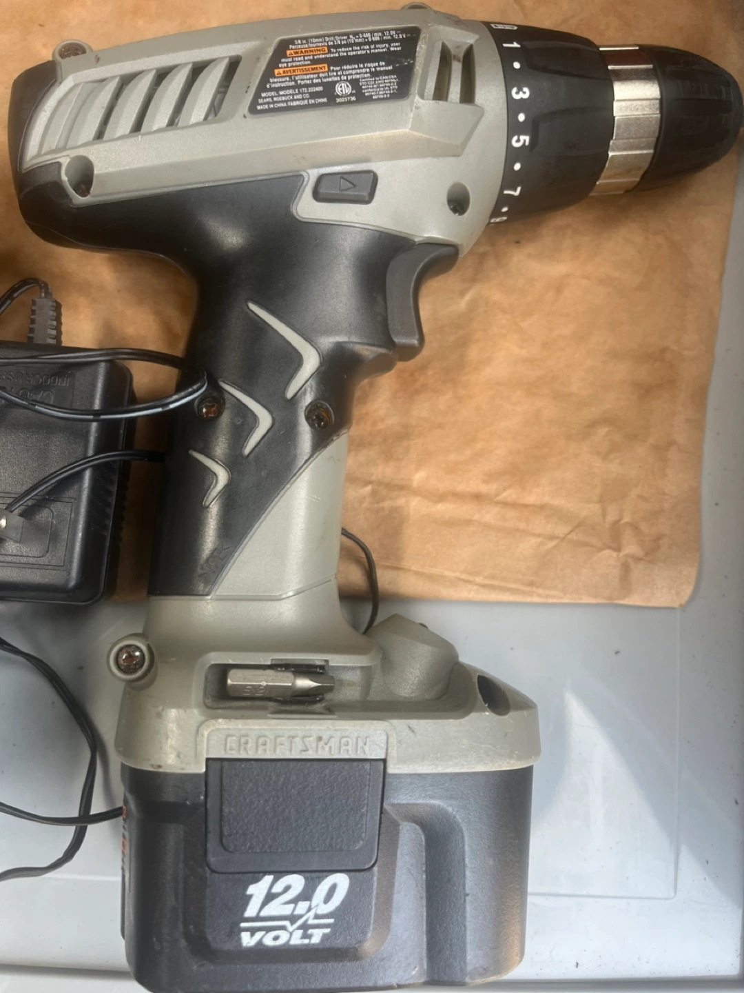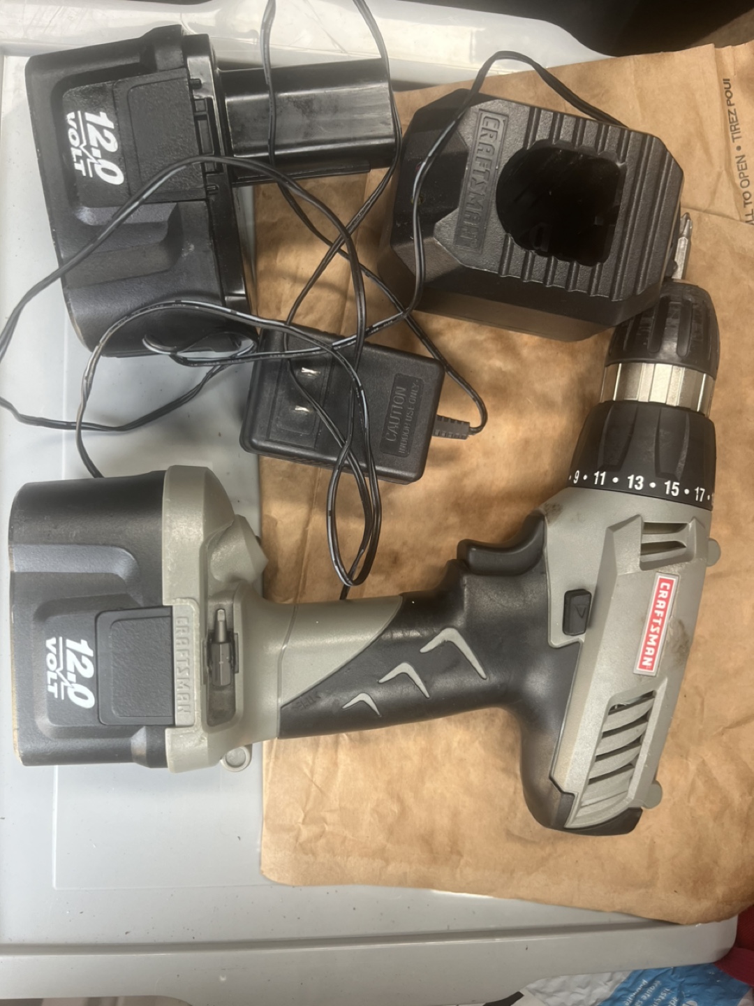 Selling a Craftsman 12.0 Volt cordless drill. It comes with the charger and battery. Great for small projects around the house!