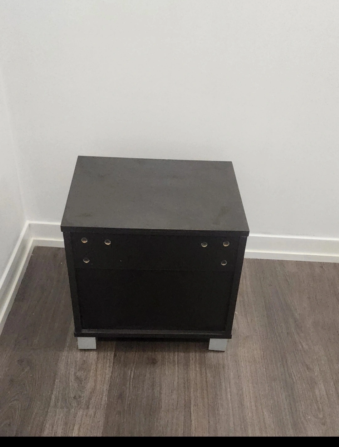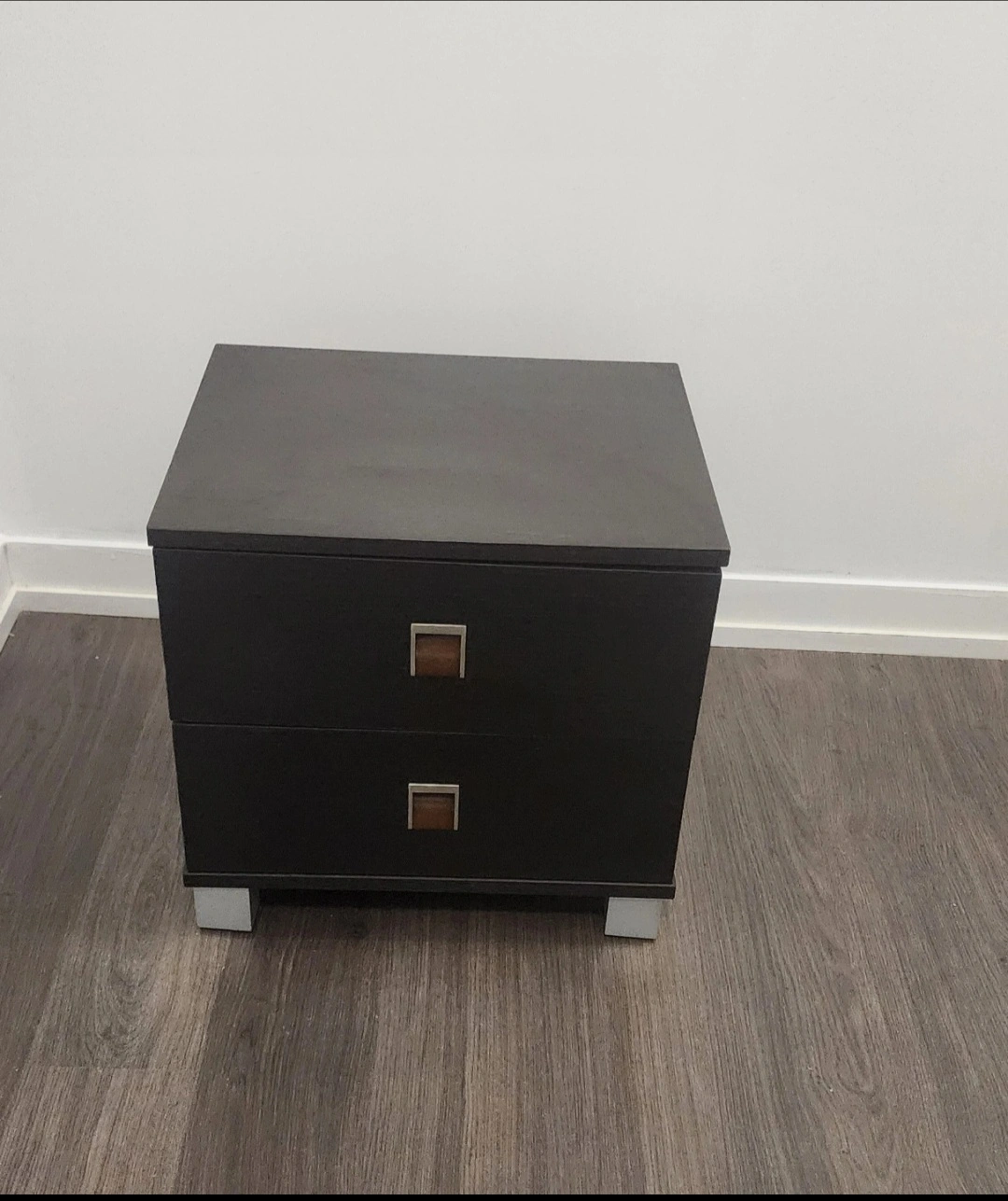 Here's a dark brown nightstand with two drawers. It's in great shape and ready for a new home! The measurements are approximately 19 inches in height and 20 inches in width