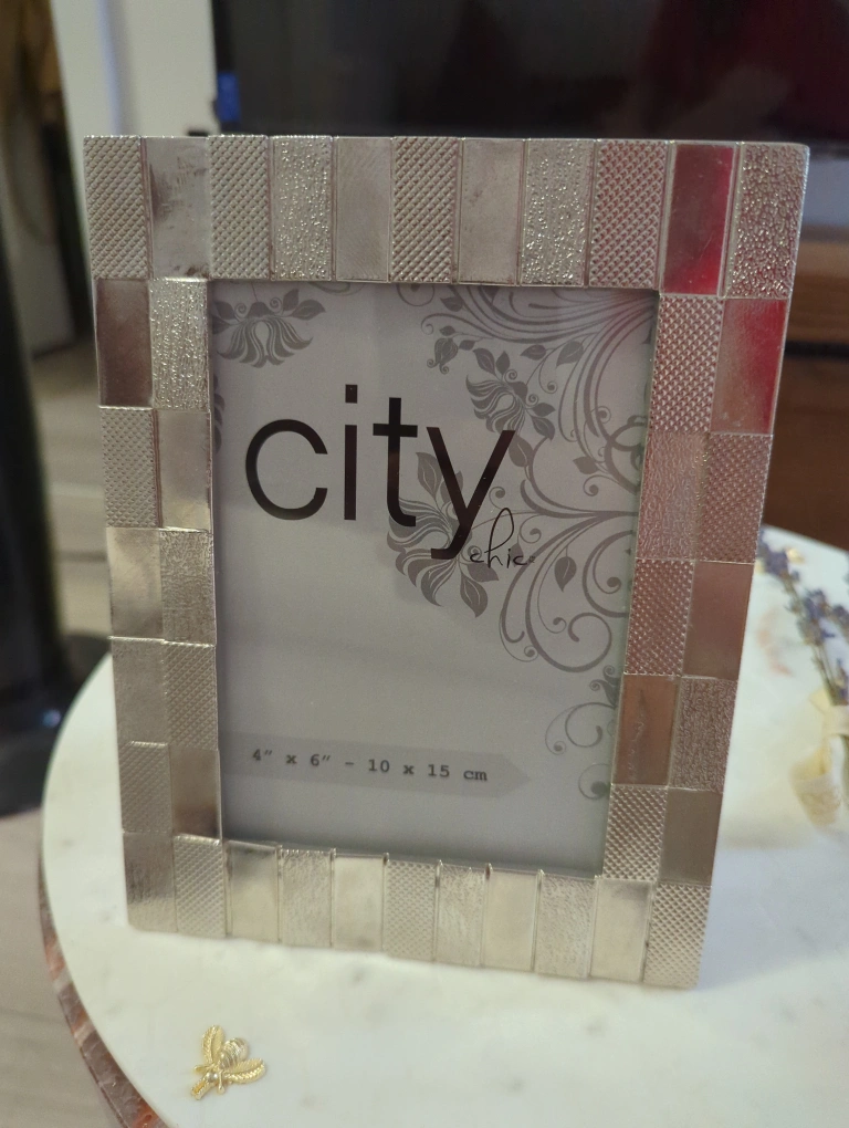 A lovely City Chic picture frame, perfect for displaying your favourite memories! It holds a 4" x 6" (10 x 15 cm) photo and has a silver finish