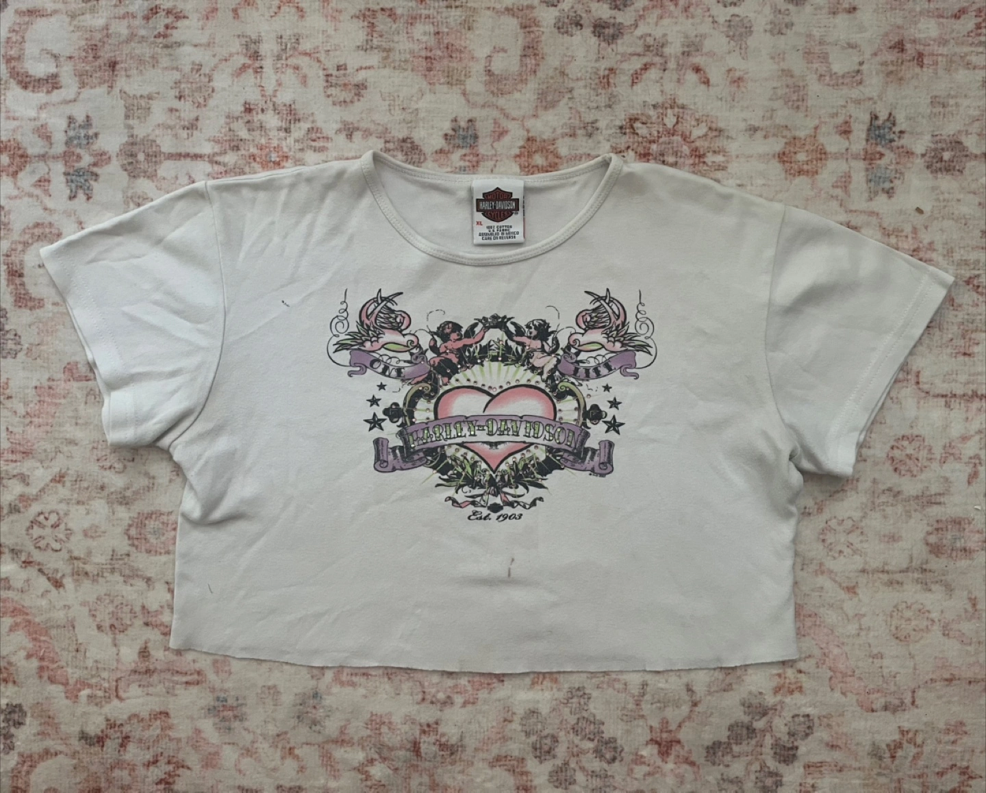 95Up for grabs is a Harley-Davidson crop top! It's a size XL and features a cool graphic design. Not in perfect condition but very good quality still so selling anyways and for cheap. Super cute tho still