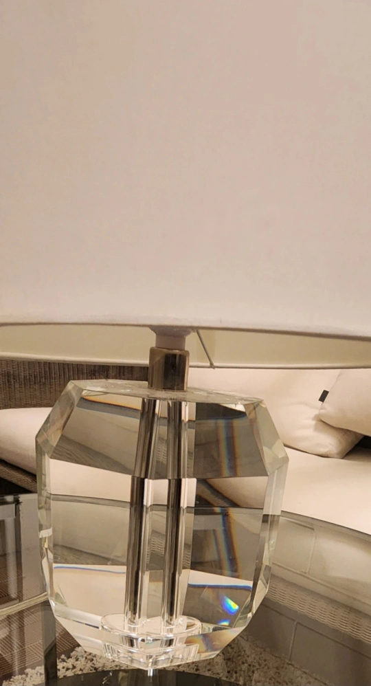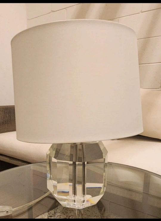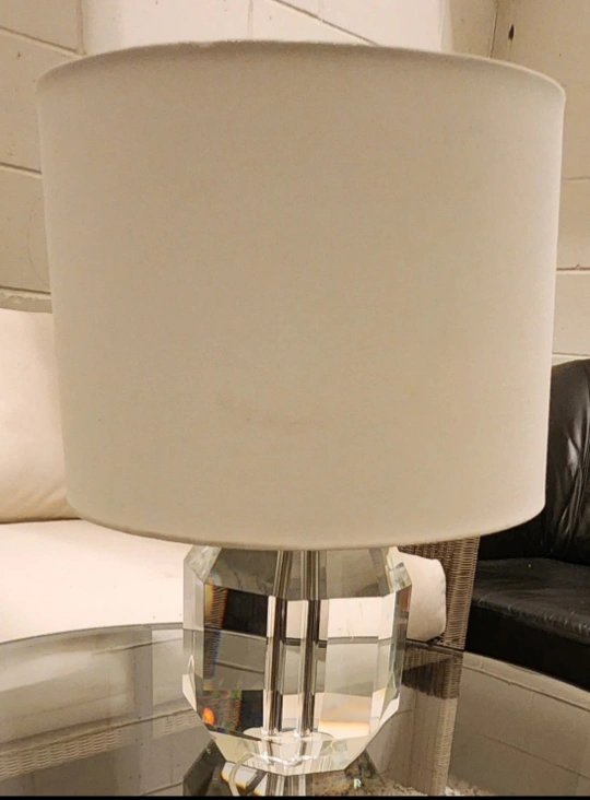 Selling a lovely crystal table lamp. It has a beautiful crystal base and a simple white shade. It would look great in any room!