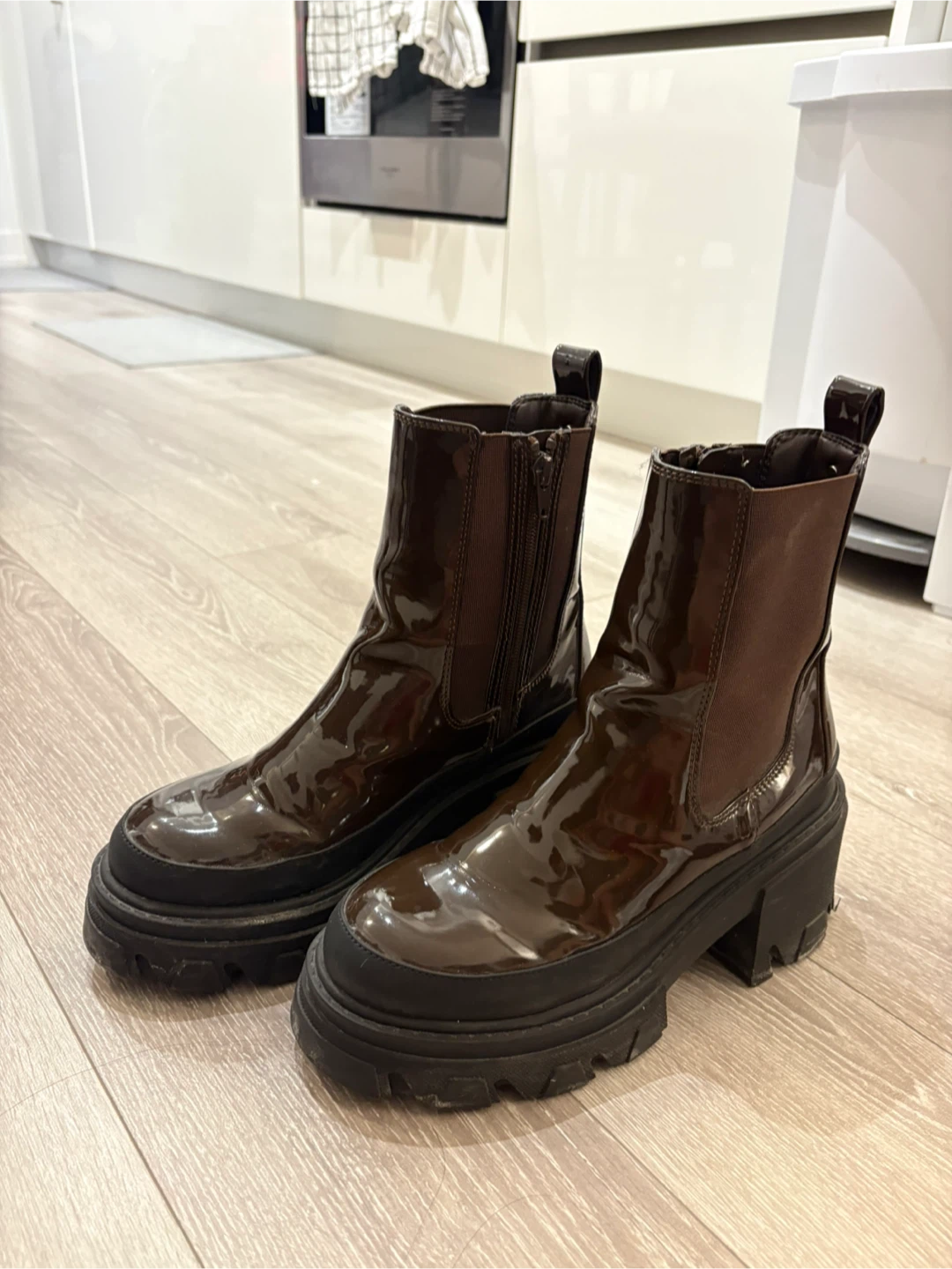Aldo Patent Leather Platform Boots Size 7.5