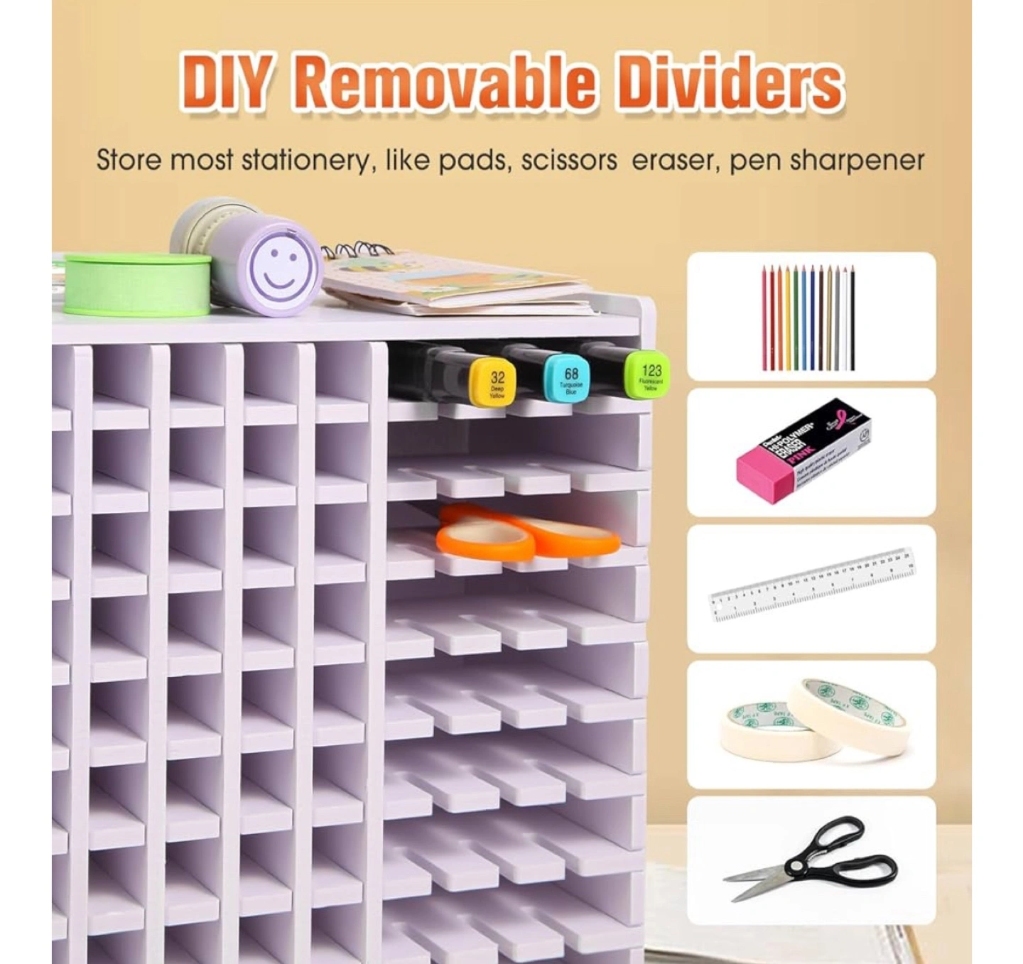 *CASH Only* Brand New Declutter your art space with this marker storage rack! It has 240 slots to keep your markers, pens, or other stationery organized. This rack features DIY removable dividers to customize the space as you need. Note - one divider is broken at the edge but it does not affect its function [Check Out My Other Listings]