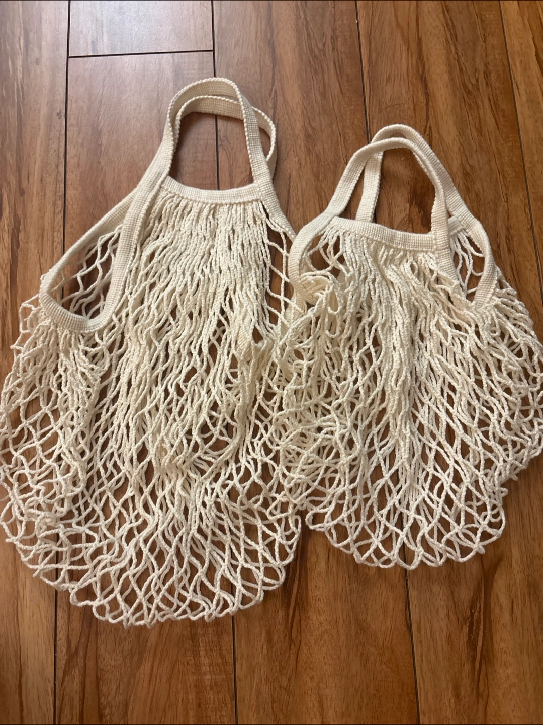 Selling a set of two IKEA KUNGSFORS mesh bags in natural colour. They're perfect for groceries or carrying everyday items. lightweight and portable, making them super convenient for shopping. Originally bought for $9.99