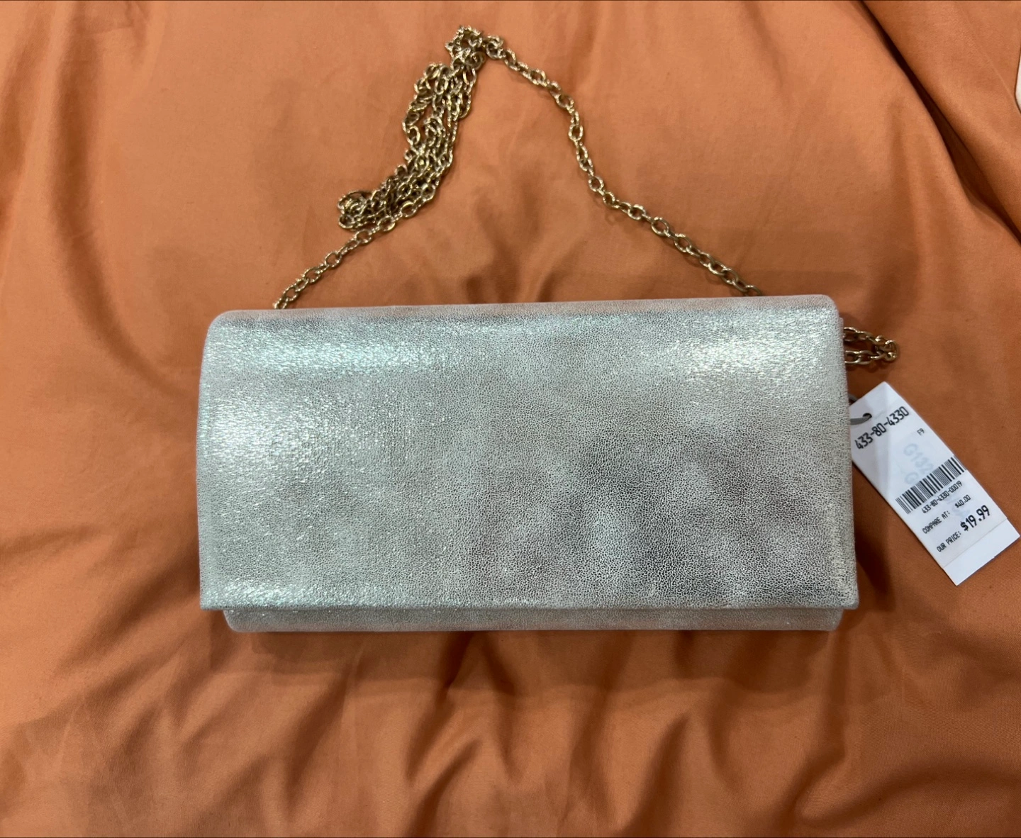 Selling a cute white / shimmery gold clutch bag that comes with a golden chain! You can’t really see the gold from the picture but it’s super cute.
