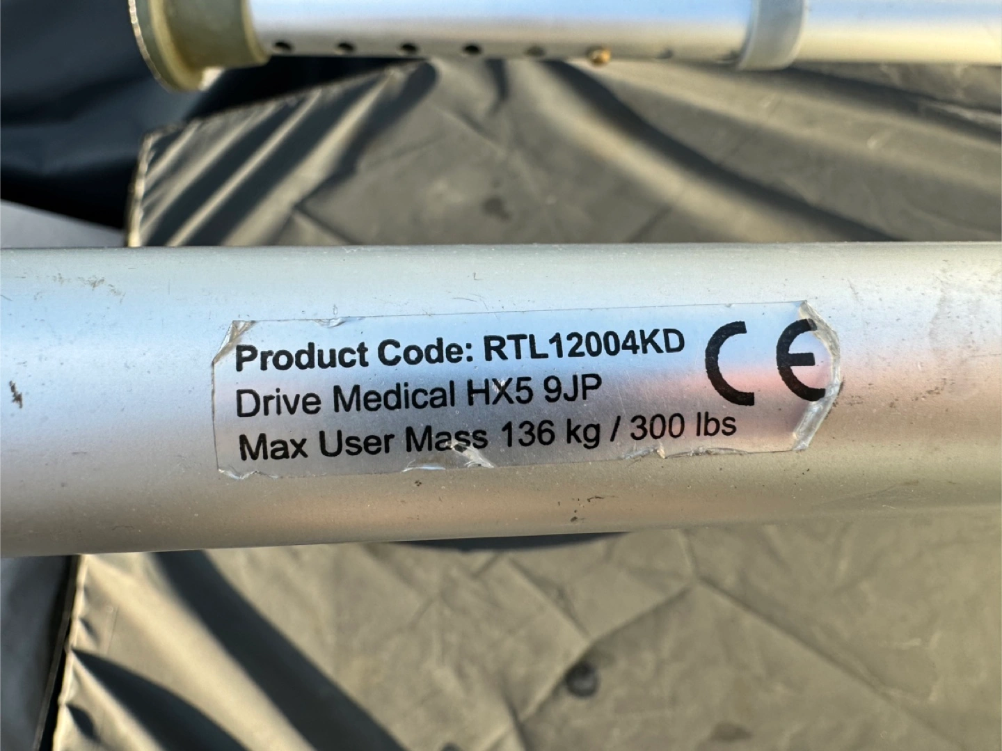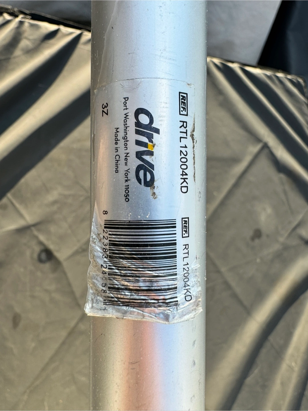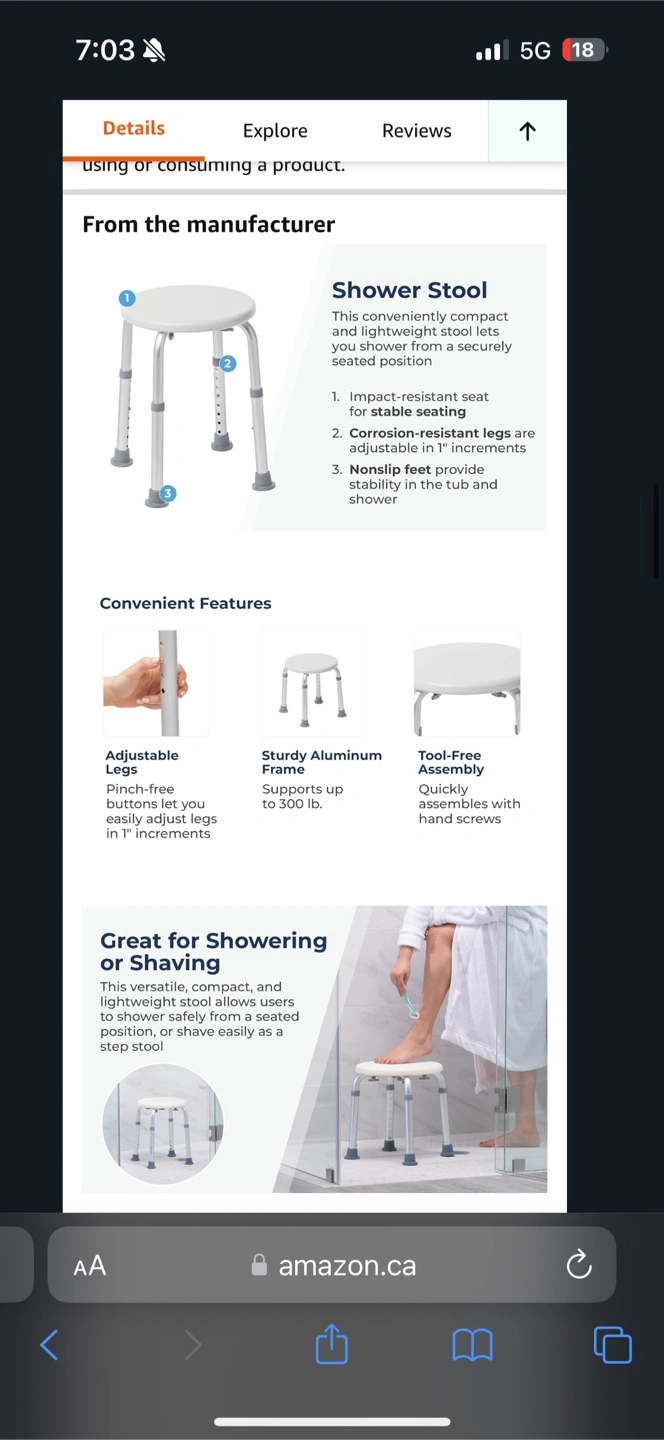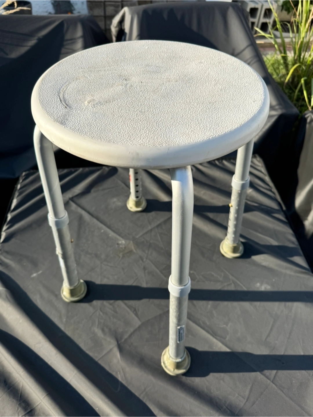 Selling a Drive Medical compact bathroom shower stool. It's white and made of aluminum.