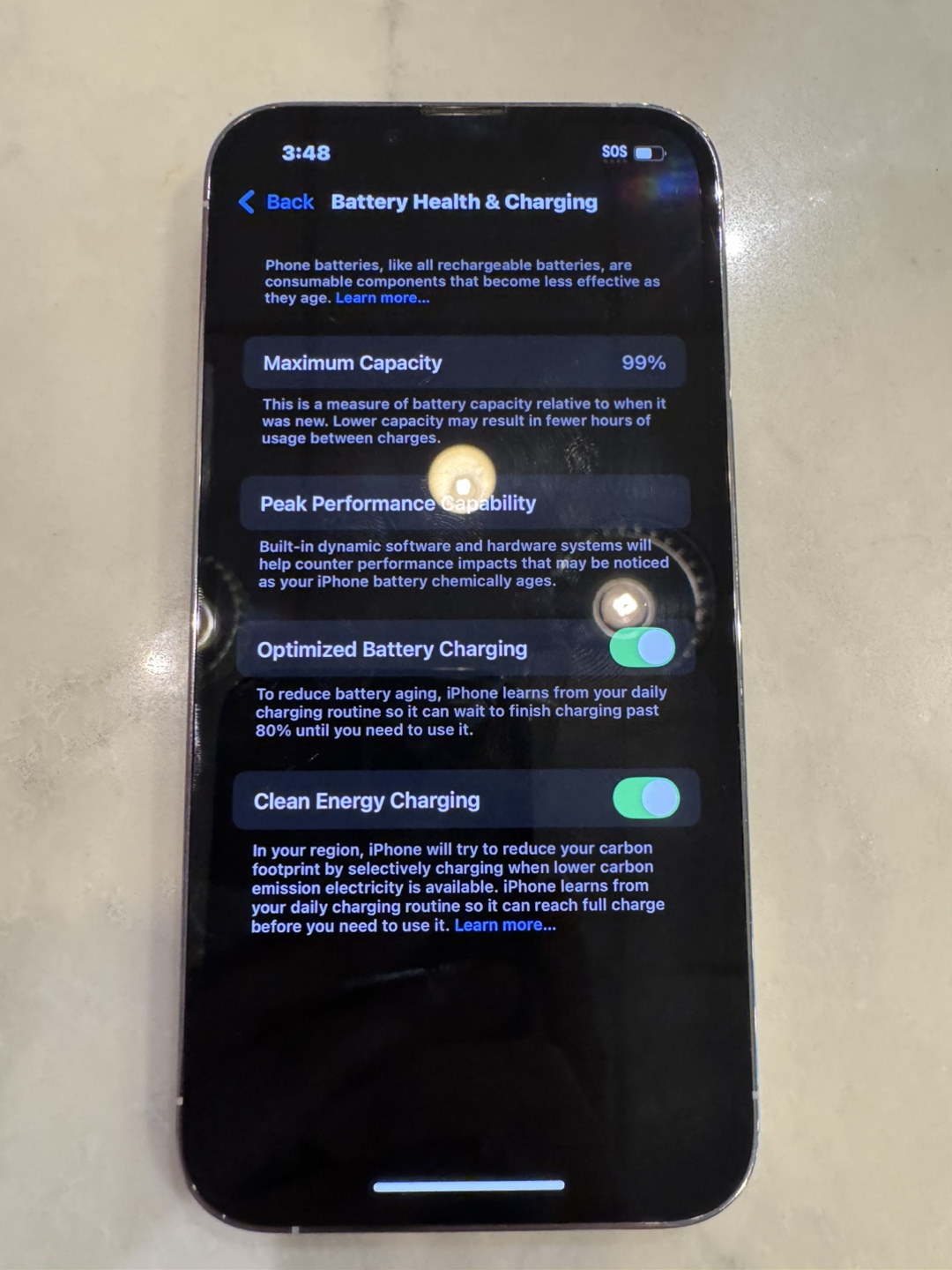 The phone has been rarely used and is in excellent condition, almost like new. Battery health is still at 99%.