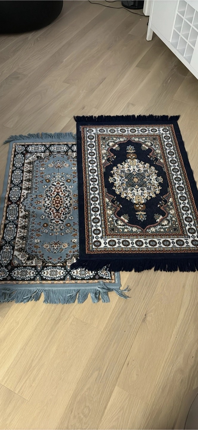 1000+Two rugs in excellent condition. One is light blue and the other is navy blue. 44 x 27”. Pick up from Yonge and queens quay.