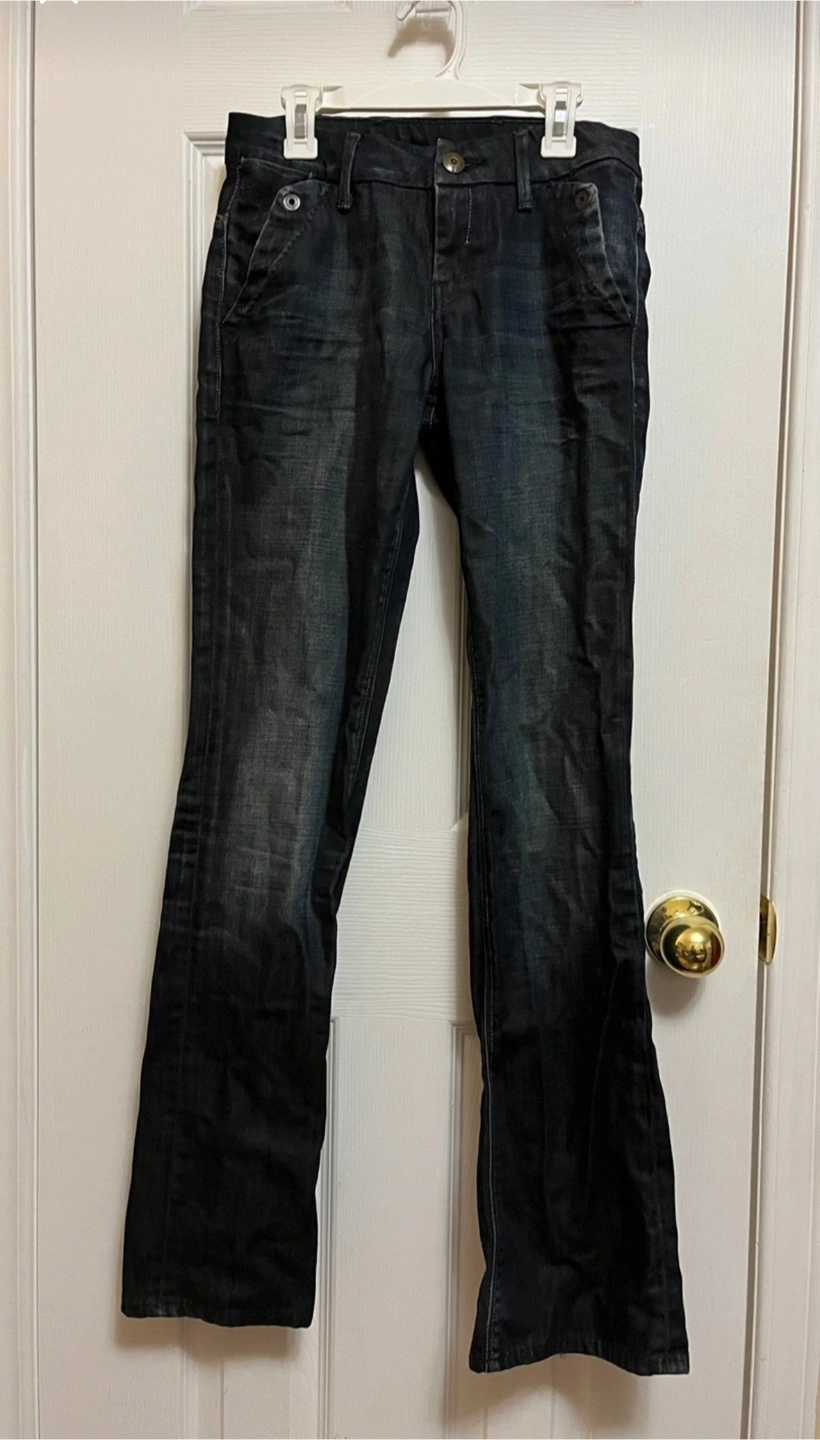 Selling a pair of G-Star Raw denim jeans. They are size 34 and have a stylish, dark wash. These jeans feature unique pocket detailing on the back. They are in good condition and ready for a new home!